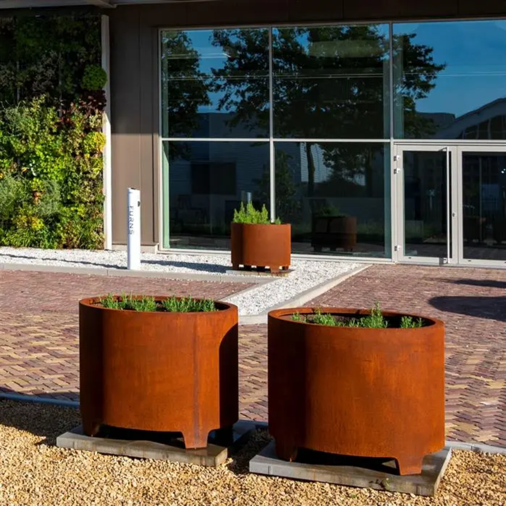 Nota: la jardinera se entrega en estado bruto, sin la superficie oxidada. Esta se desarrollará de forma natural en un plazo de 4-5 meses, según las condiciones climáticas y la ubicación. Para resultados más rápidos, el elemento puede tratarse con un acelerador de óxido.