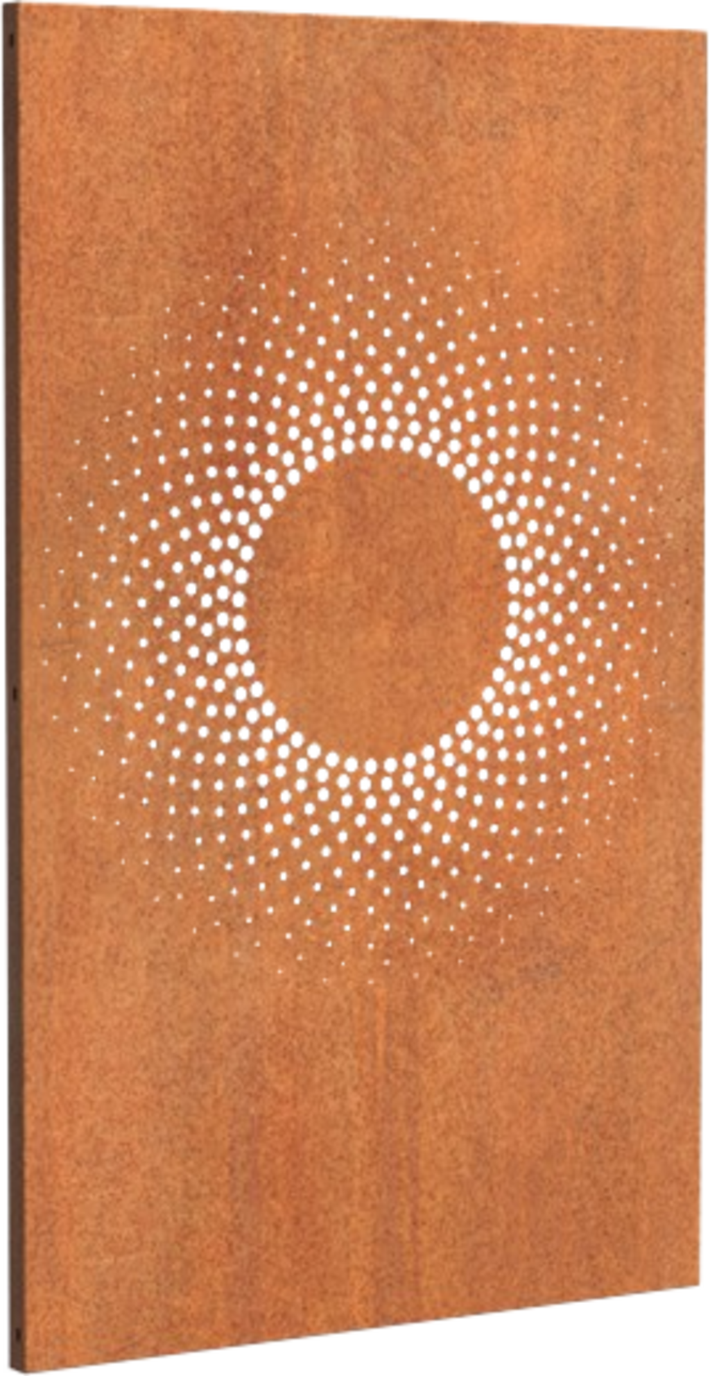 Nota: este panel se entrega en bruto, sin superficie oxidada. Esta se desarrollará de forma natural en un plazo de 4-5 meses, según las condiciones climáticas y la ubicación. Para resultados más rápidos, el elemento puede tratarse con un acelerador de óxido.