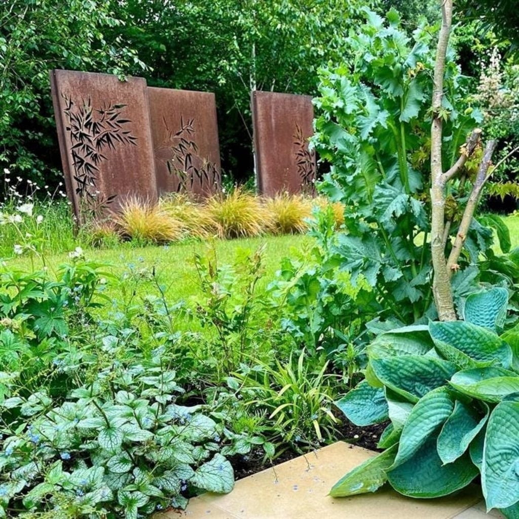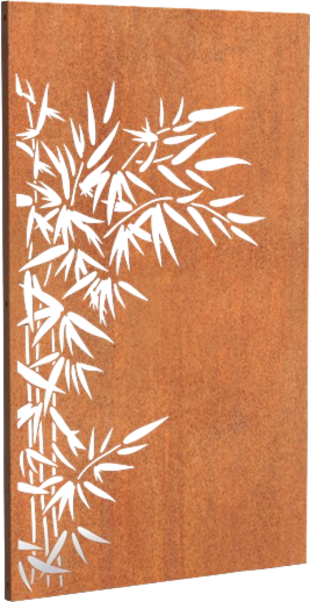 Con este panel de ocultación de acero Corten, podrás crear la privacidad adecuada en tu jardín, protegiéndote al mismo tiempo del viento y de las miradas indiscretas. El elemento cortado con láser con motivo de bambú se adapta especialmente bien a jardines de estilo asiático, aportando un toque exótico al entorno.
