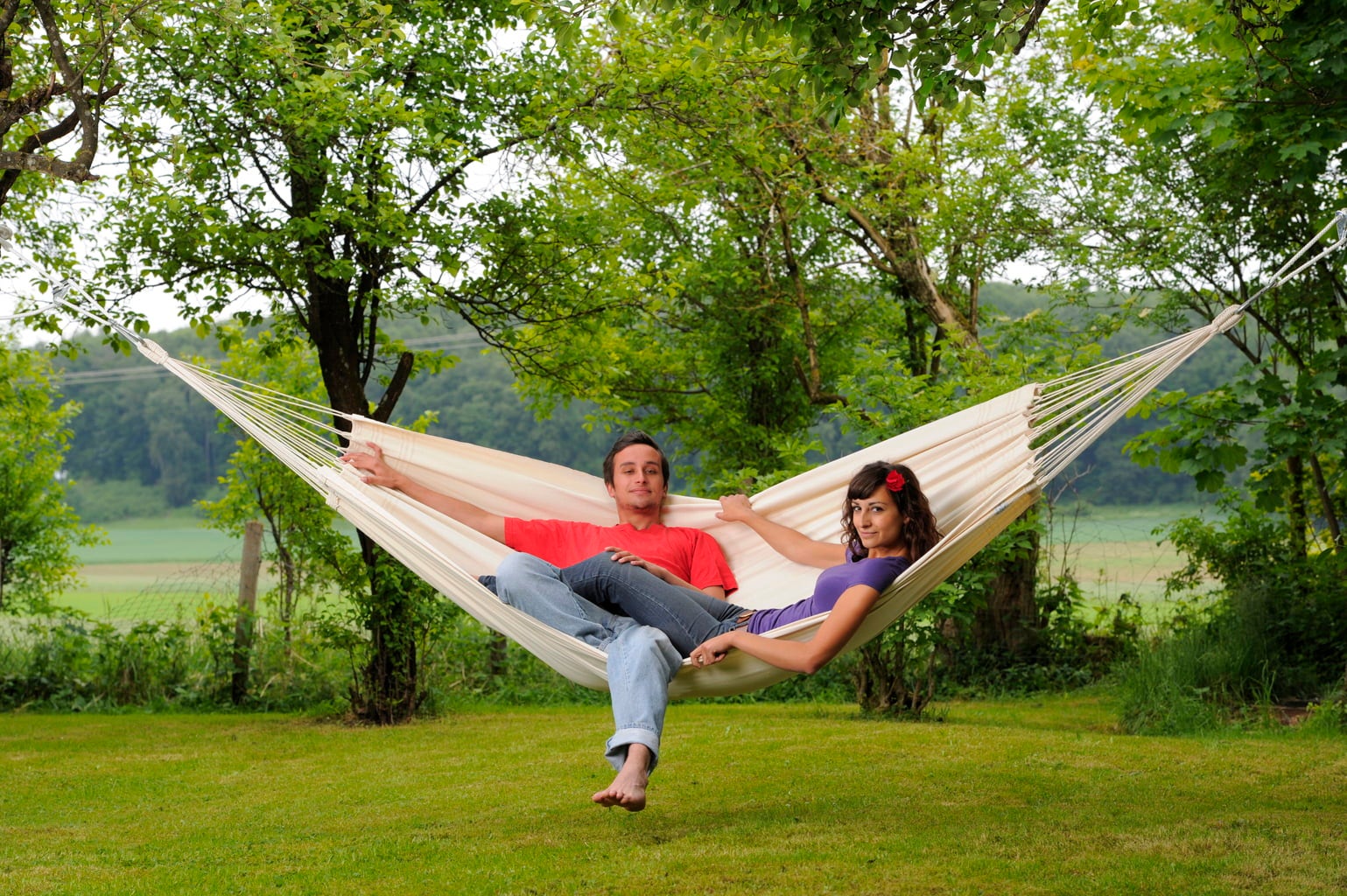 ¡En la hamaca XL Barbados podrás relajarte maravillosamente y dejar atrás la rutina diaria! El tejido extra suave y de trama densa se adapta delicadamente a tu cuerpo, ofreciéndote el máximo confort. Gracias a los numerosos cables de suspensión, el peso se distribuye de forma óptima y la hamaca se abre perfectamente, proporcionándote una sensación de absoluta ingravidez.