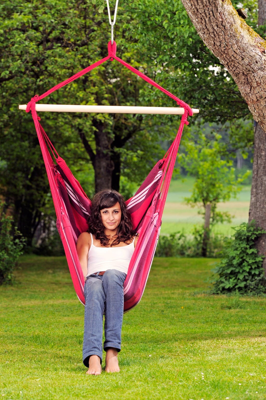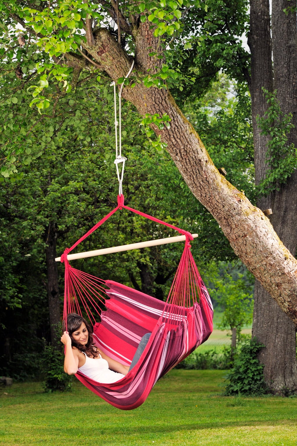 ¡Sumérgete en la relajación más pura con la silla suspendida Havana de Amazonas! Esta espaciosa y cómoda silla colgante invita a soñar y descansar.