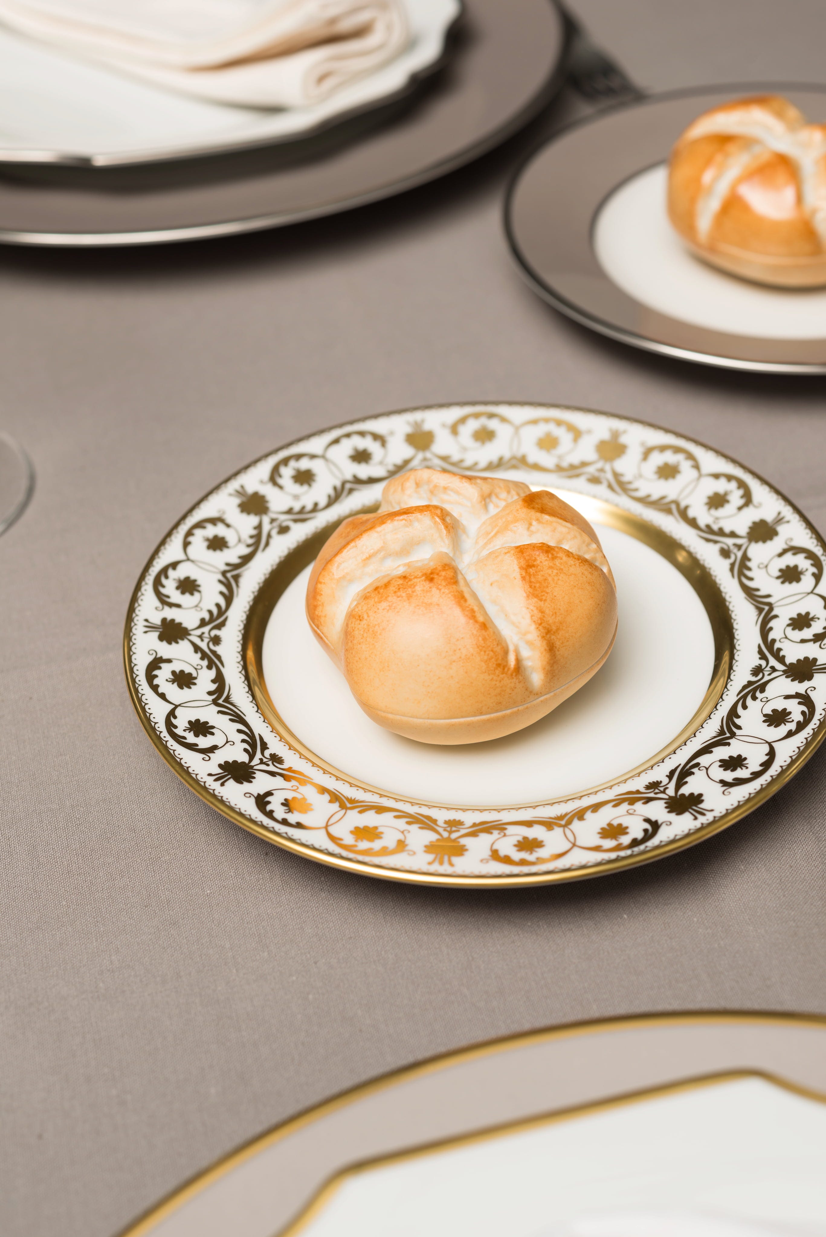 La cajita en forma de kaisersemmel de la manufactura Augarten revive una decoración de mesa histórica El emperador Francisco José I también sentía predilección por estos panecillos tiernos.
