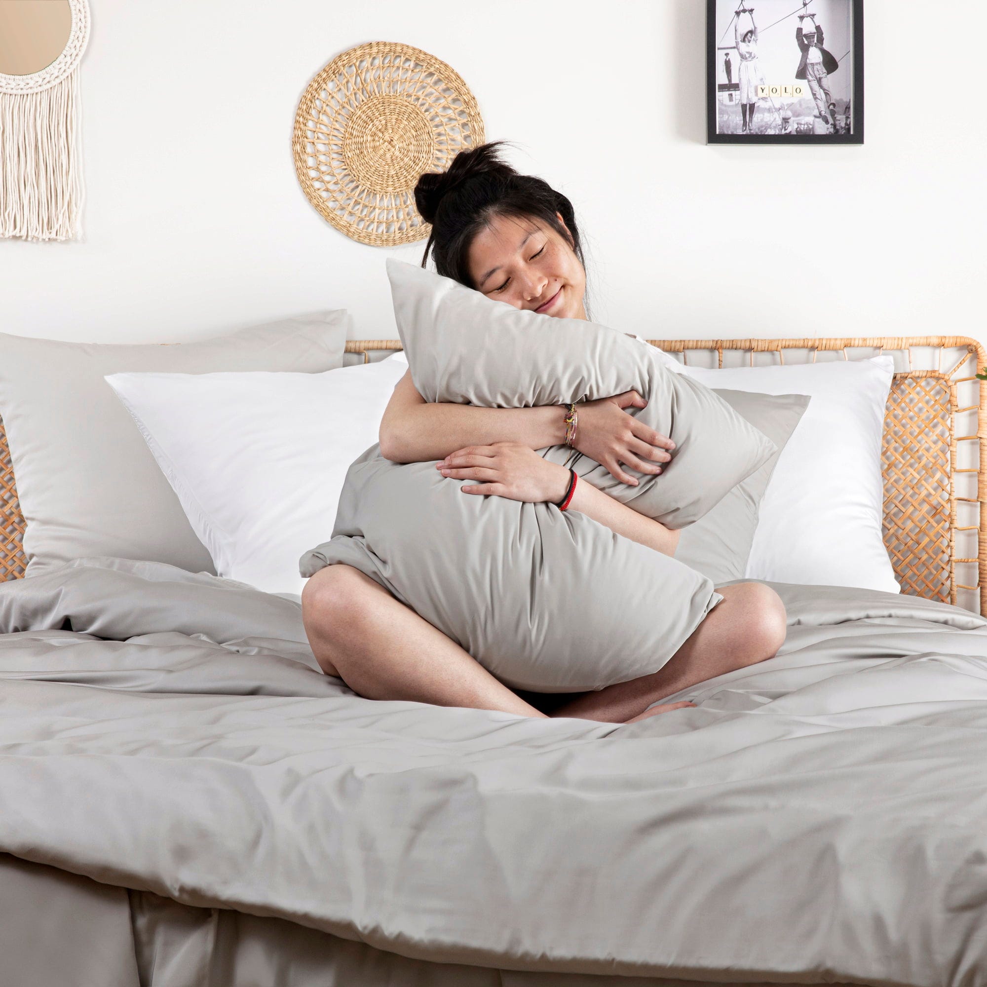 Bambaw Cozy Funda de Almohada de Bambú 40 x 60 cm, Set de 2, Grey