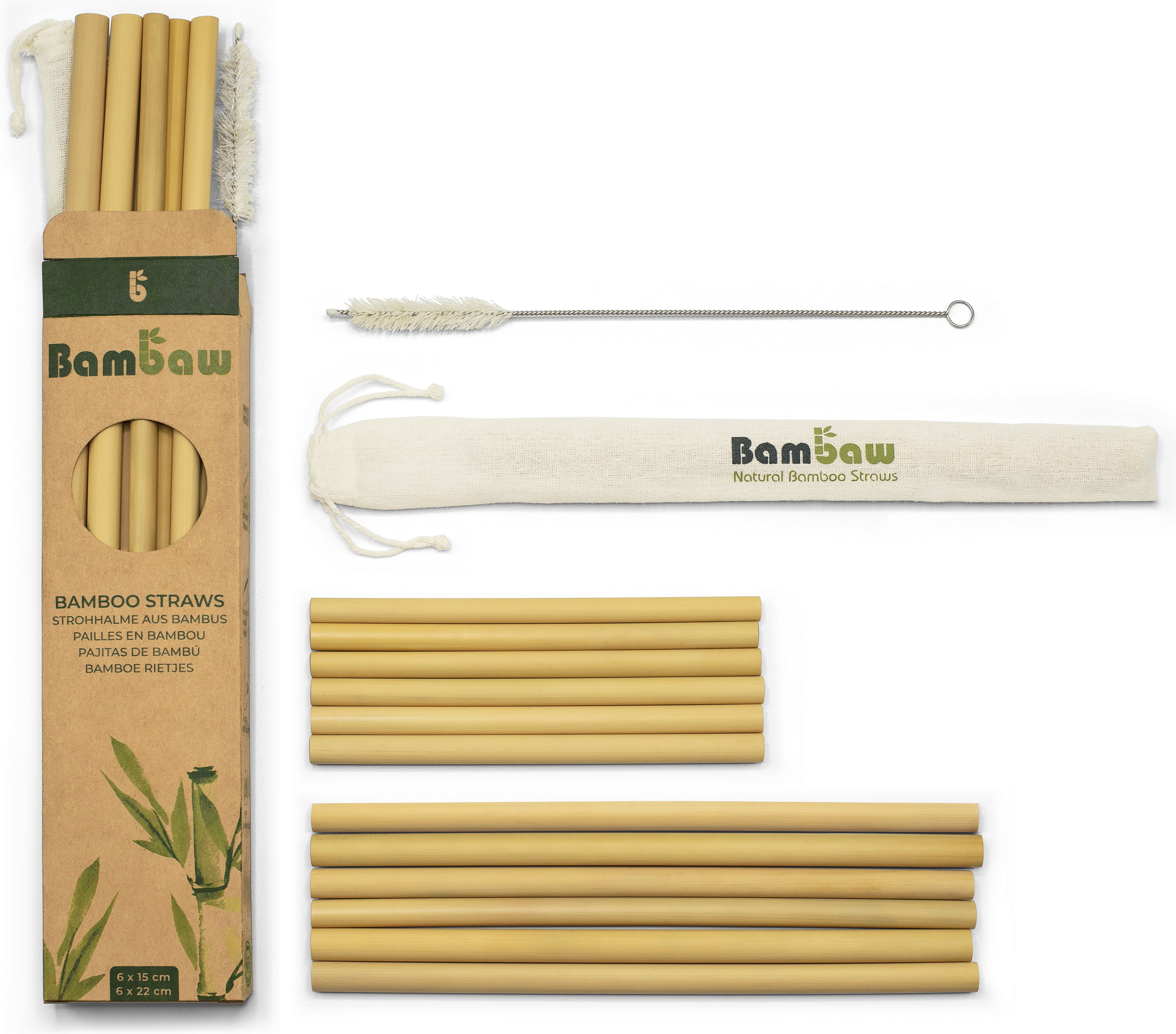 Bambaw Caja de Pajitas de Bambú, 12x 14 cm & 22 cm (12 unidades)