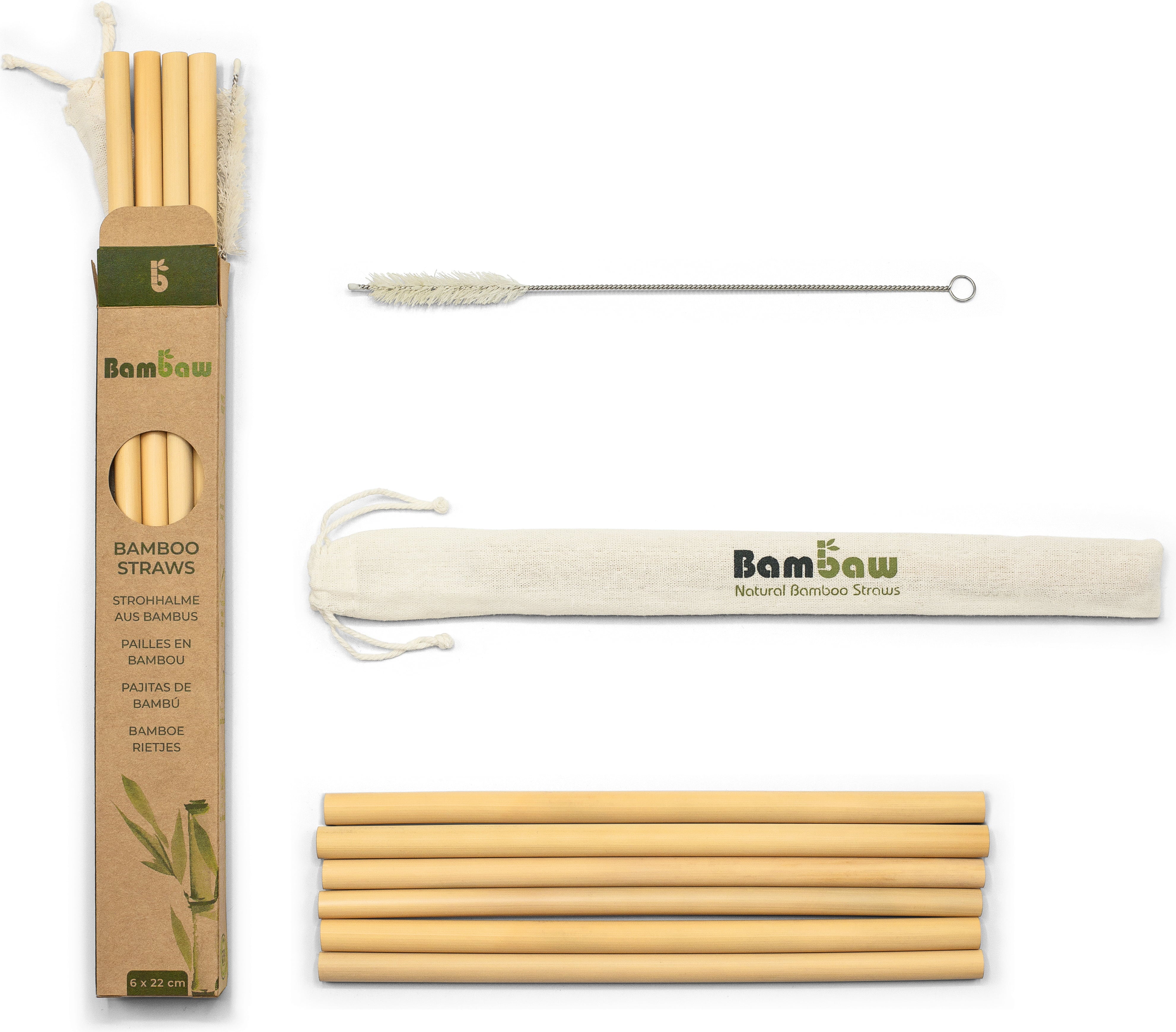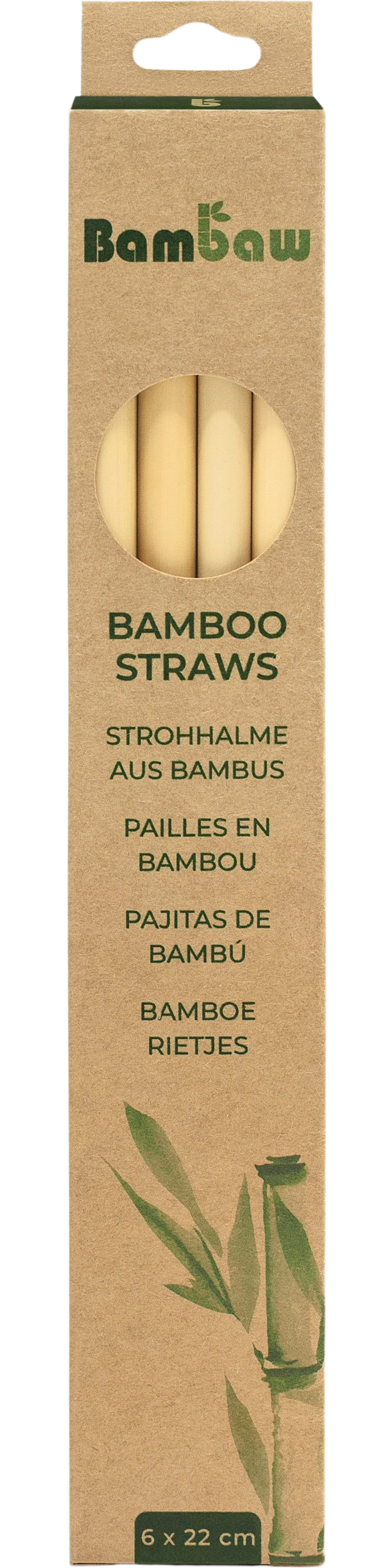 Bambaw Caja de Pajitas de Bambú, 6x 22 cm (6 unidades)