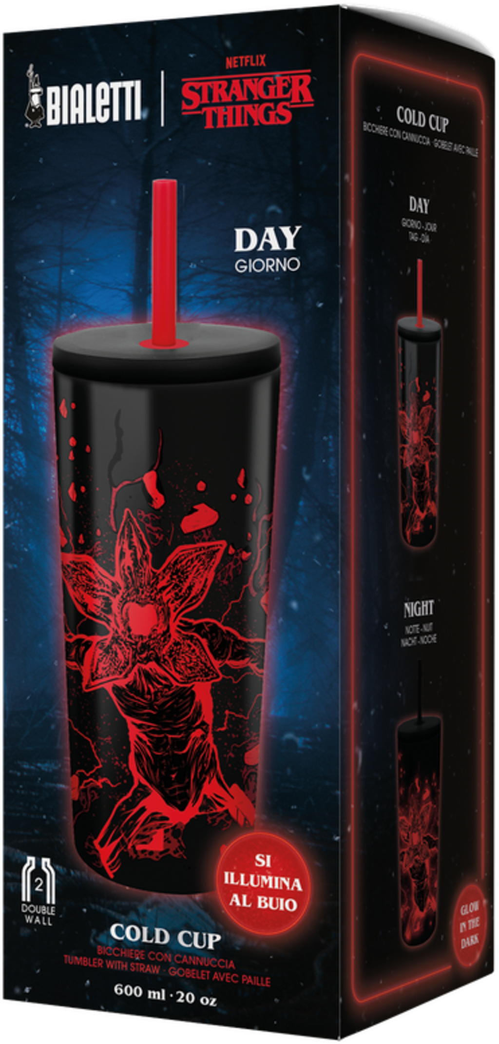 Los gráficos de diseño exclusivo con el look de 'Stranger Things' hacen que esta nevera sea realmente única. La pajita de silicona te permite beber cómodamente tu bebida favorita. La particularidad es que en la oscuridad el Demogorgon brilla en rojo, ¡para que el Inframundo no se te vaya de las manos!
