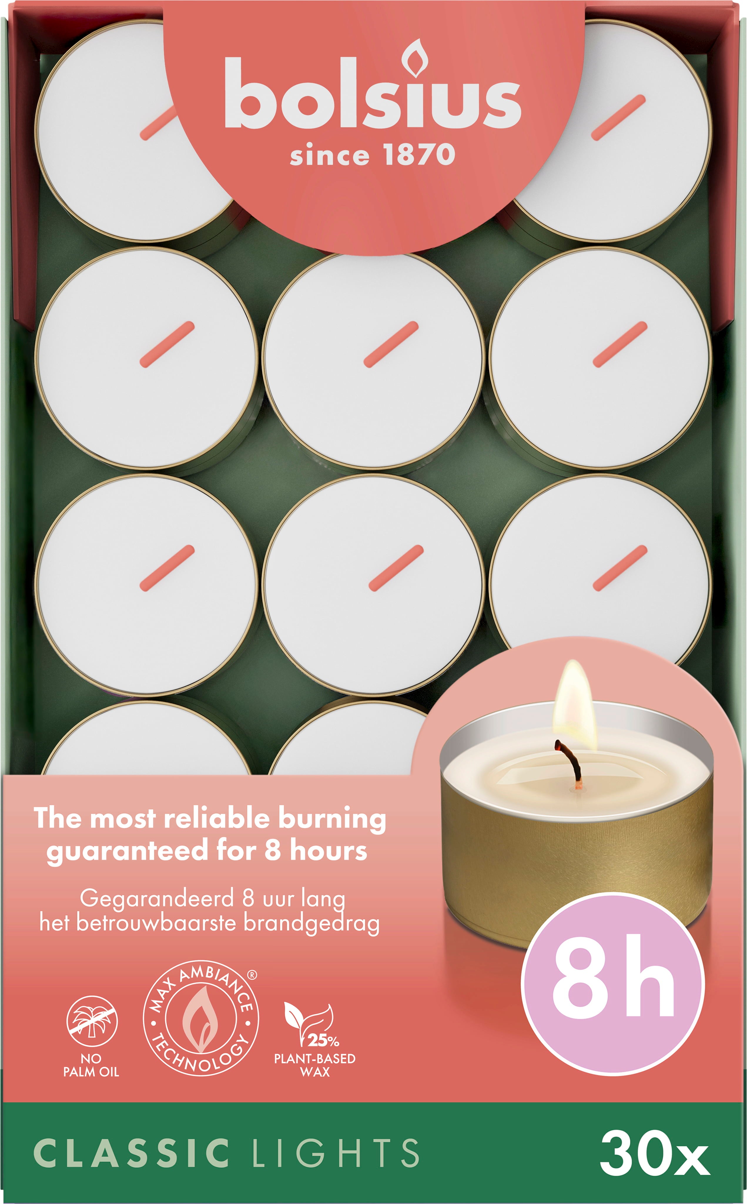 bolsius Essentials - Velitas de Té Classic 8 h (30 uds.)