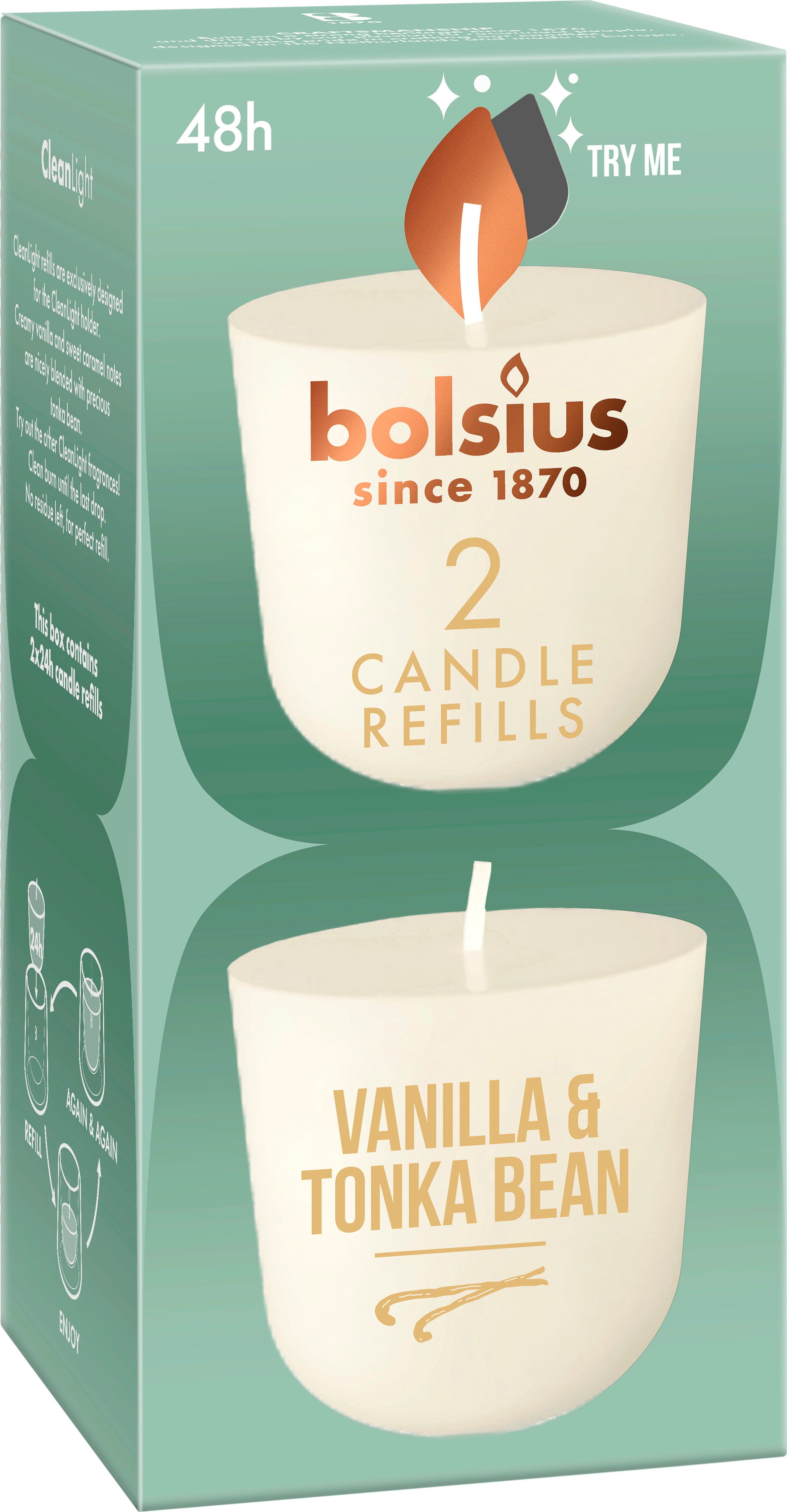 bolsius Paquete de 2 velas de repuesto CleanLight ScentMax, Vanilla & Tonka Bean