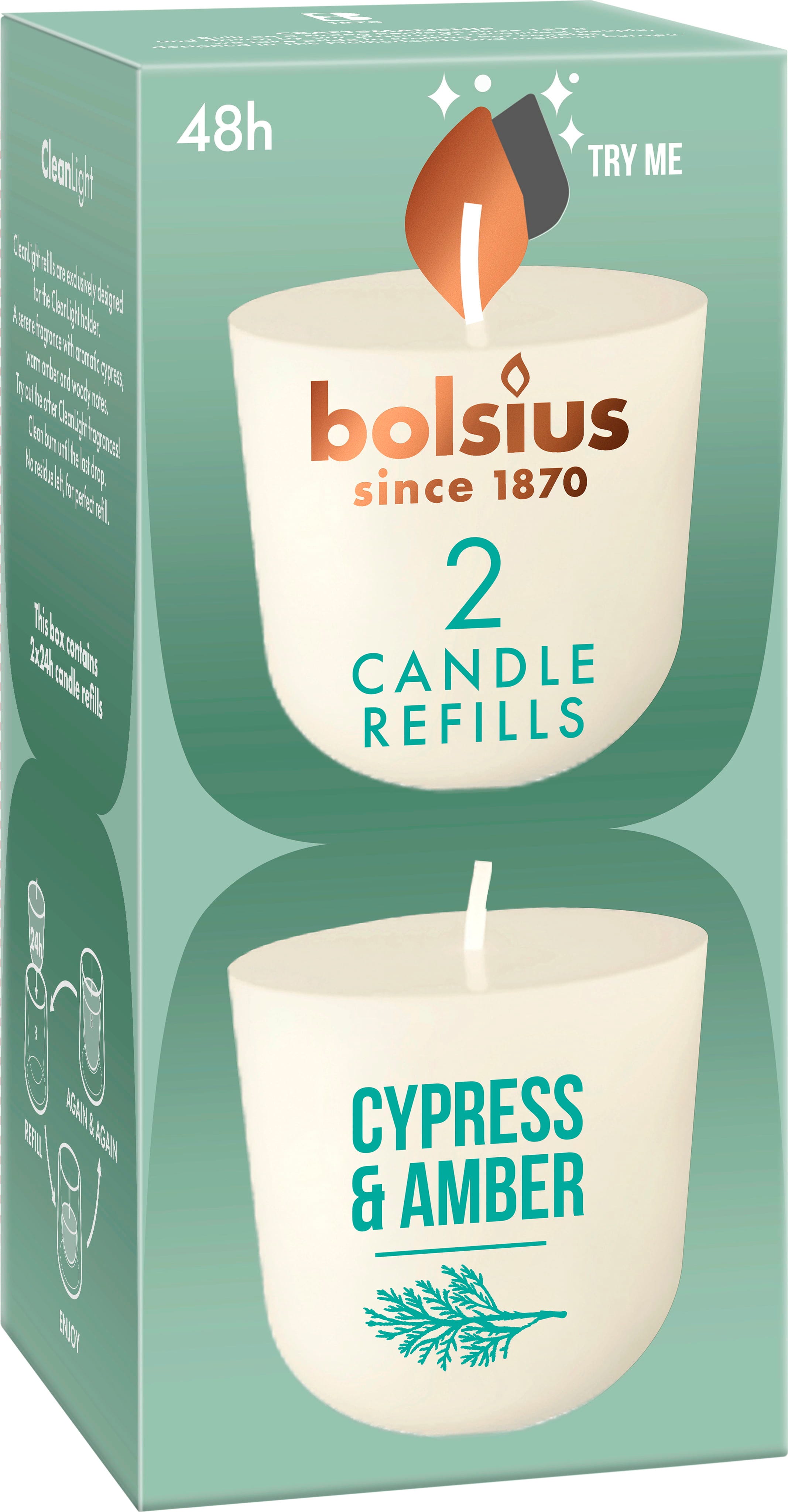 bolsius Paquete de 2 velas de repuesto CleanLight ScentMax, Cypress & Amber