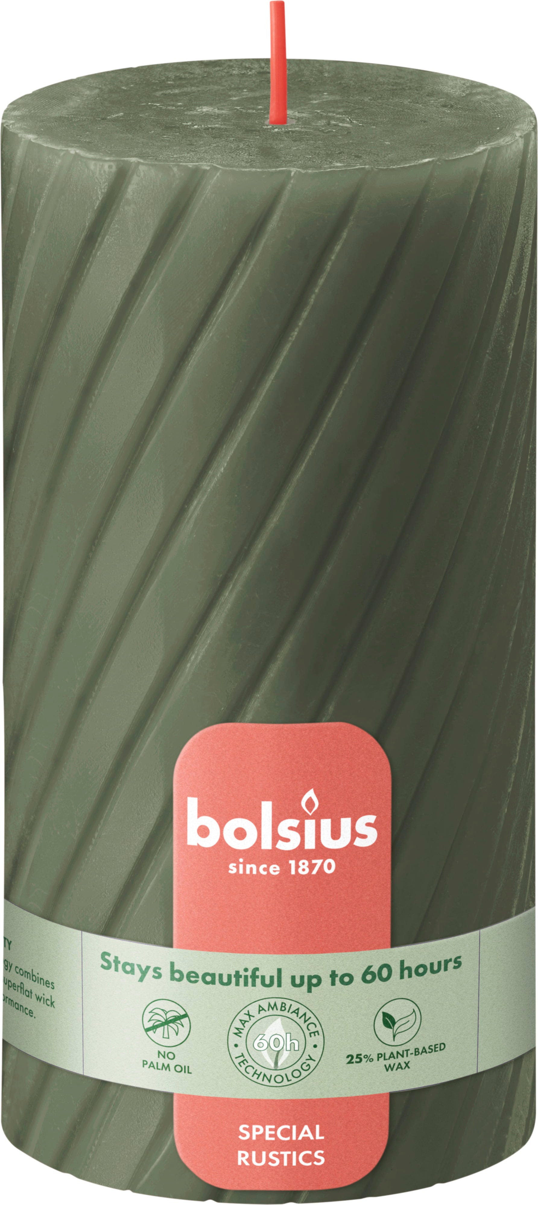 bolsius Vela Rústica a Rayas - 13/6,8 cm, Oliva