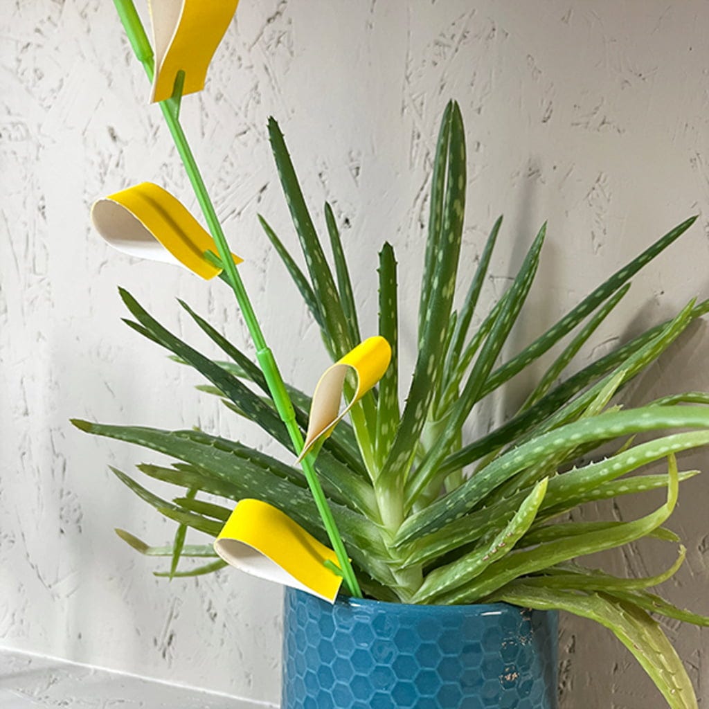 - 4 palos atrapamoscas incl. 16 pegatinas amarillas: Trampa pegajosa contra mosquitos y plagas voladoras.