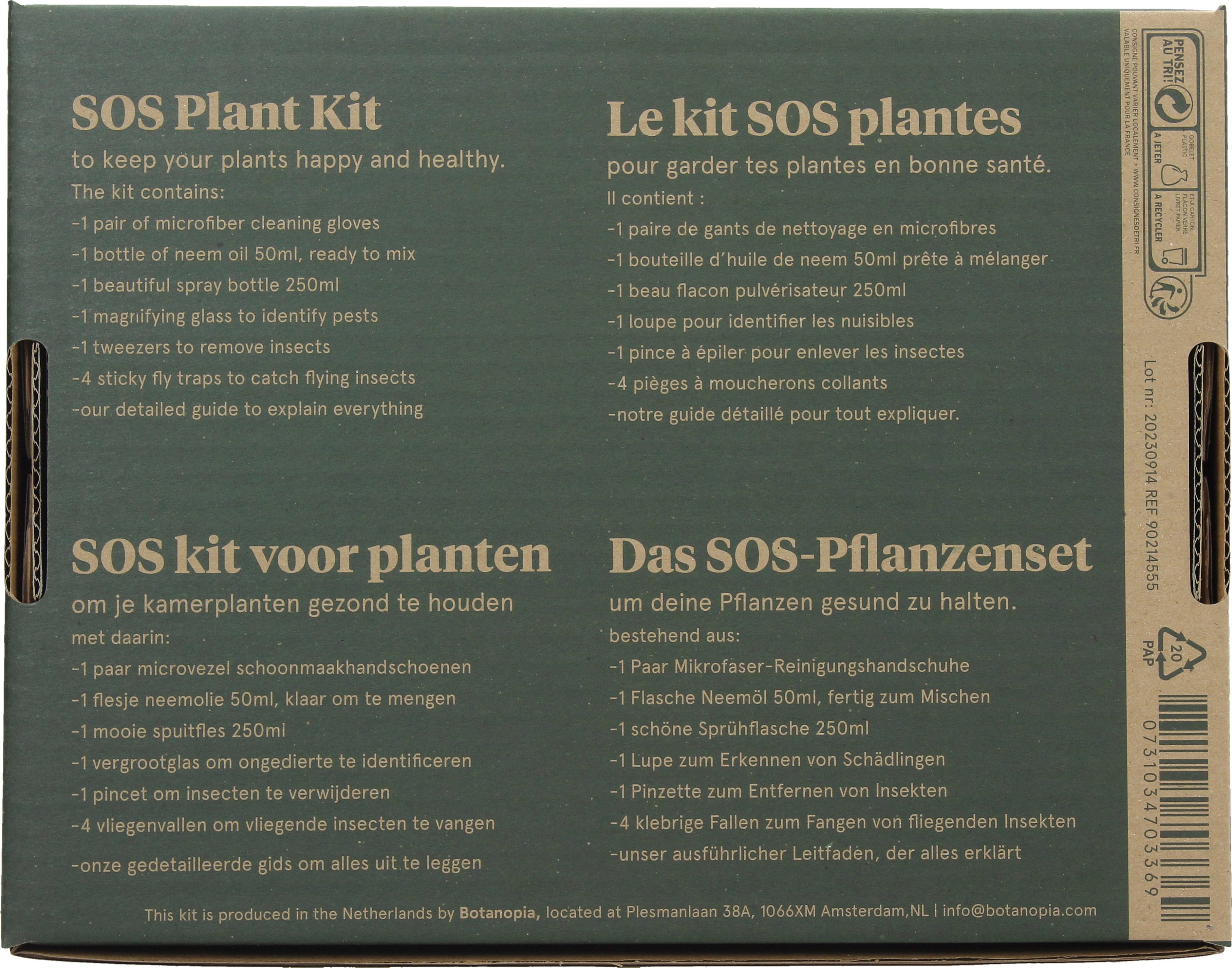 En los momentos en los que incluso los cuidados más cariñosos no son suficientes para mantener radiantes a tus amigos verdes, entra en juego el Kit de plantas SOS, porque incluso los padres de plantas experimentados a veces se enfrentan a desafíos. El kit para plantas SOS se creó para las plantas que lo están pasando mal. Con este completo kit, podrás echar un vistazo de cerca a tus plantas, mimarlas y tomar las medidas necesarias para devolverles todo su esplendor.