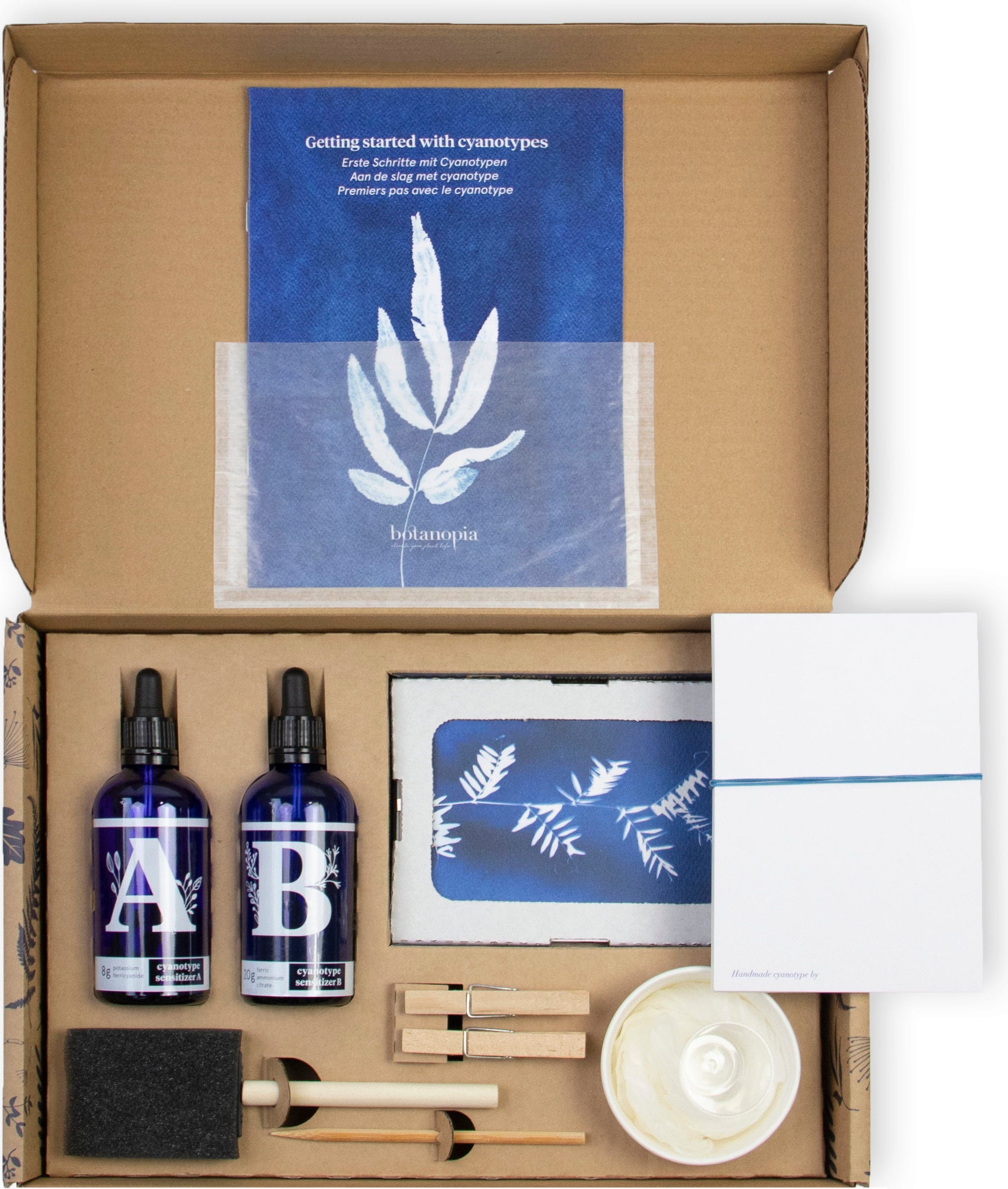 La cianotipia es una técnica fotográfica descubierta en 1842 que utiliza la luz del sol para crear una impresión en azul cian. En ese momento, el proceso se usaba para hacer copias de dibujos técnicos, hoy puedes usarlo para crear pequeñas obras de arte.
