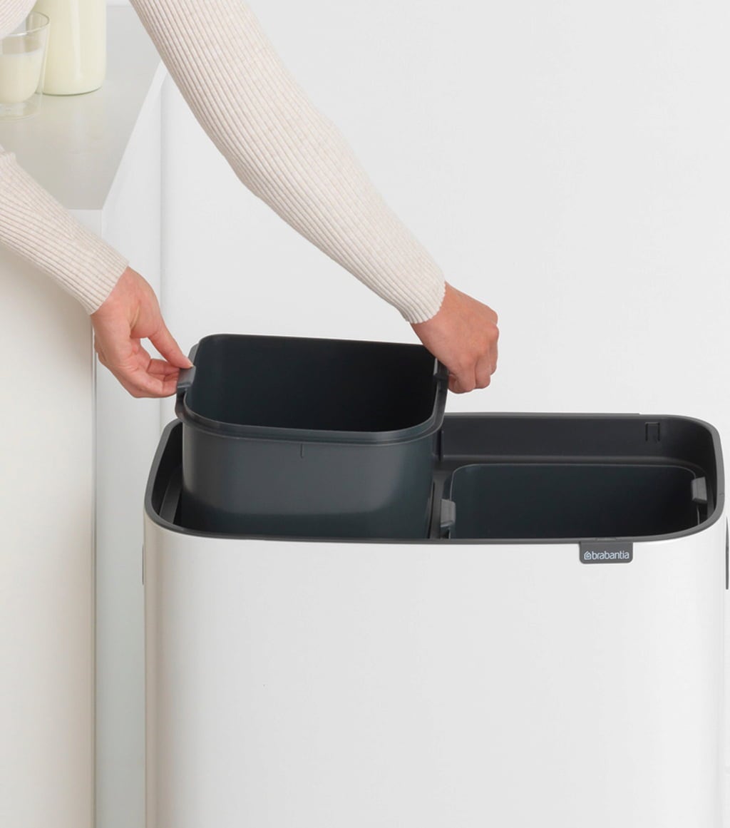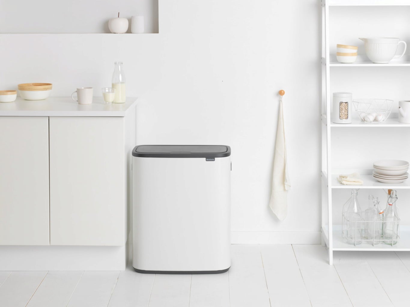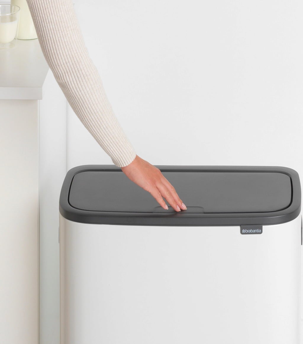 ¡Hazte ya con un cubo de basura Bo Touch Bin de Brabantia y tira los residuos con estilo y elegancia! Este cubo tiene una gran capacidad ya que cuenta con dos cubos interiores extraíbles de 30 litros cada uno. Encaja perfectamente en la pared o en cualquier esquina. Además abrirás y cerrarás su tapa suavemente con un ligero toque.