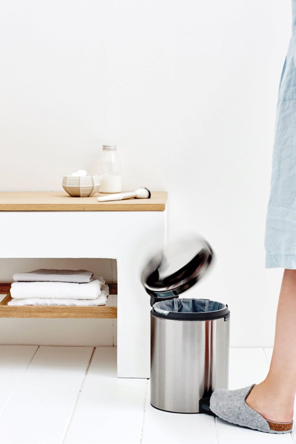 - Incluye un paquete muestra de bolsas PerfectFit de Brabantia (código W) – fáciles de colocar evitando el antiestético efecto de sobresalir del borde.