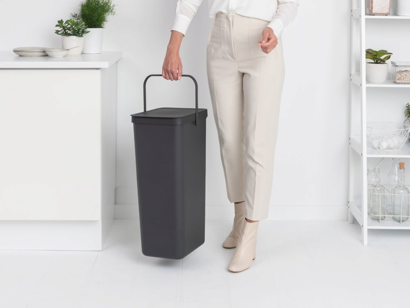 Perfecto para botellas, latas y envases de plástico, este elegante cubo de basura de la línea Brabantia Sort & Go con sus 40 litros ofrece suficiente espacio para la recogida de residuos reciclables. La tapa se puede quitar, mientras que el asa resistente asegura un transporte fácil y cómodo.