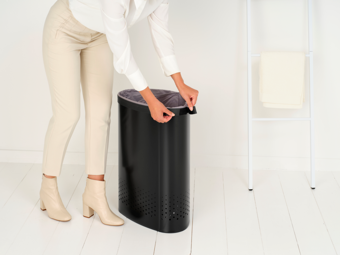 Cubo elegante e inteligente con dos compartimentos para la colada. Es la solución perfecta para ahorrar espacio y para tener tu colada perfectamente recogida. Gracias a su apertura Quick-Drop, te permite insertar tu ropa de forma cómoda y rápida. Se incluye una bolsa para la colada que se integra en el cubo, de esta forma podrás transportar la ropa de forma fácil. La tapa de plástico oculta a la vista el contenido del cubo, integrándose armoniosamente en la estancia donde esté colocado.