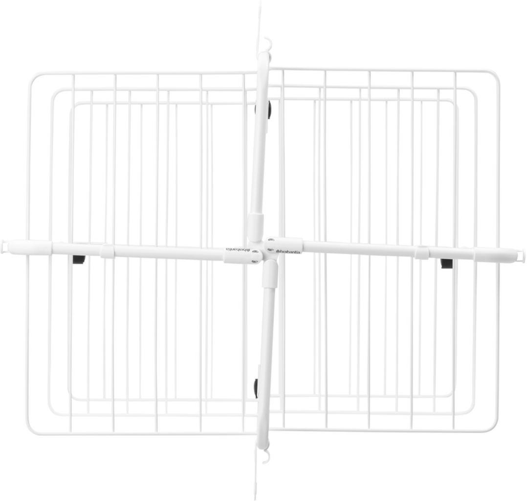 Su diseño neutro y clásico lo hace especialmente versátil, armonizando con muchos estilos y colores de interior. Los prácticos ganchos de las esquinas y los soportes para pinzas proporcionan espacio de almacenamiento adicional, y el bastidor se puede plegar para guardarlo.