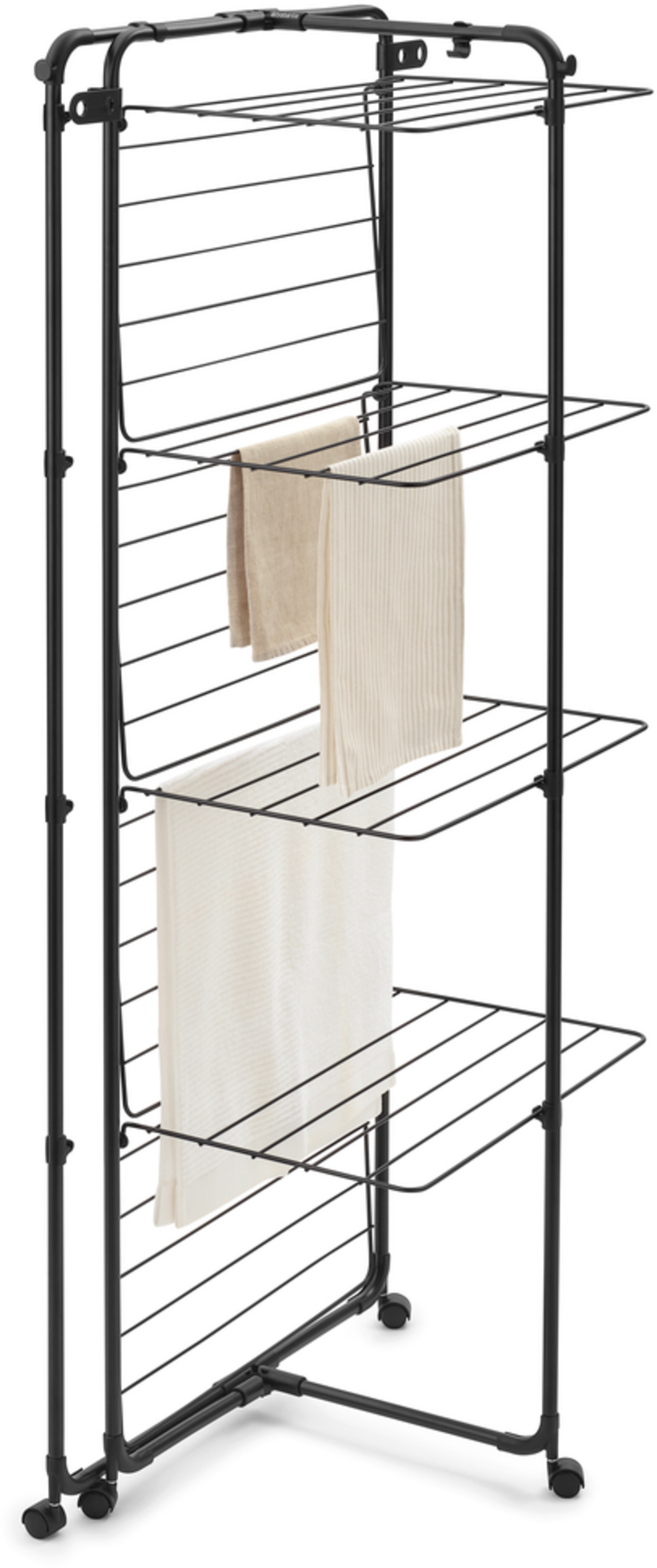 El tendedero vertical HangOn ofrece un amplio espacio de secado ocupando poco espacio. Con una capacidad de 30 metros, es ideal para grandes cargas de ropa y, gracias a su ingenioso diseño con ruedas, puede trasladarse fácilmente a cualquier rincón. Su robusta estructura de acero hace de este tendedero un complemento duradero y elegante para cualquier cocina, cuarto de baño, dormitorio o salón.