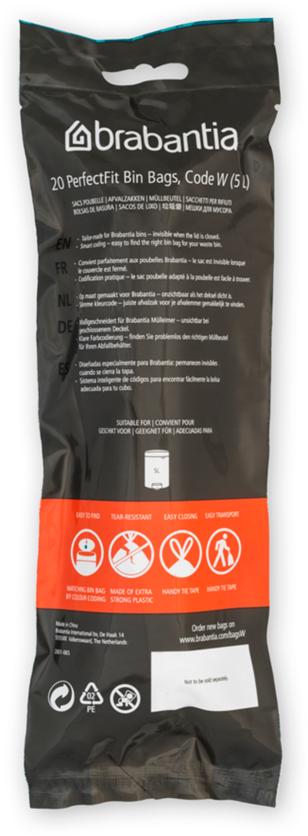 Brabantia Rollo de Bolsas de Basura PerfectFit para Bo Touch Bin, 5L (W) - 20 Unidades