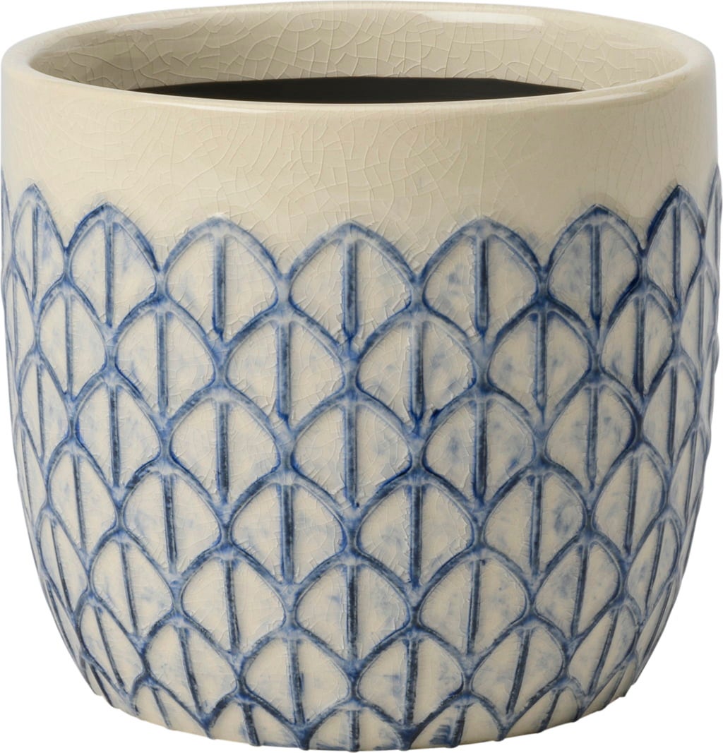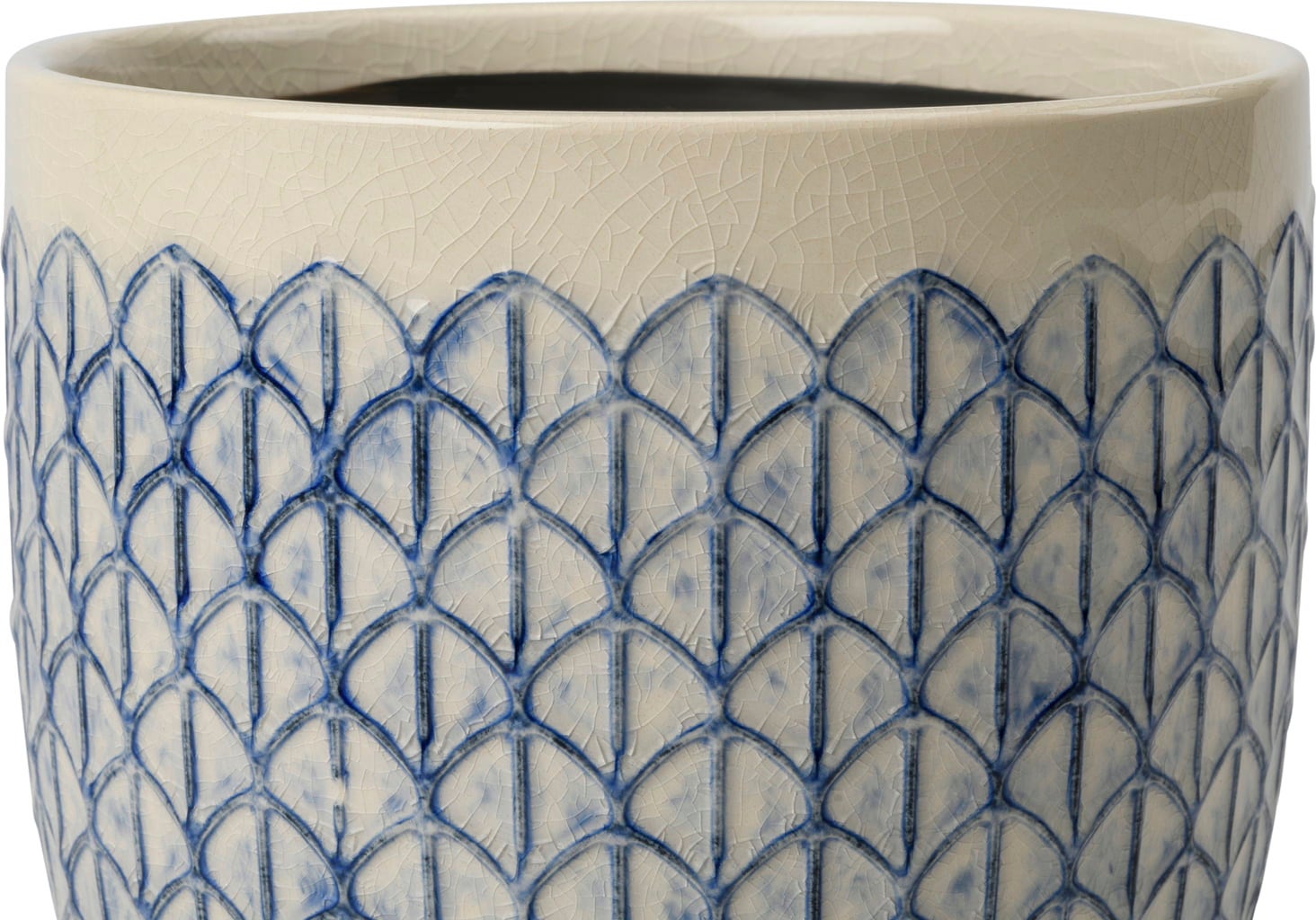 Añade un toque elegante y moderno a tu hogar con este precioso jarrón de diseño artístico. El diseño en relieve está elegantemente realzado por un tono azul intenso. Un delicado esmalte craquelado añade más profundidad al diseño y convierte este jarrón en un auténtico elemento decorativo.