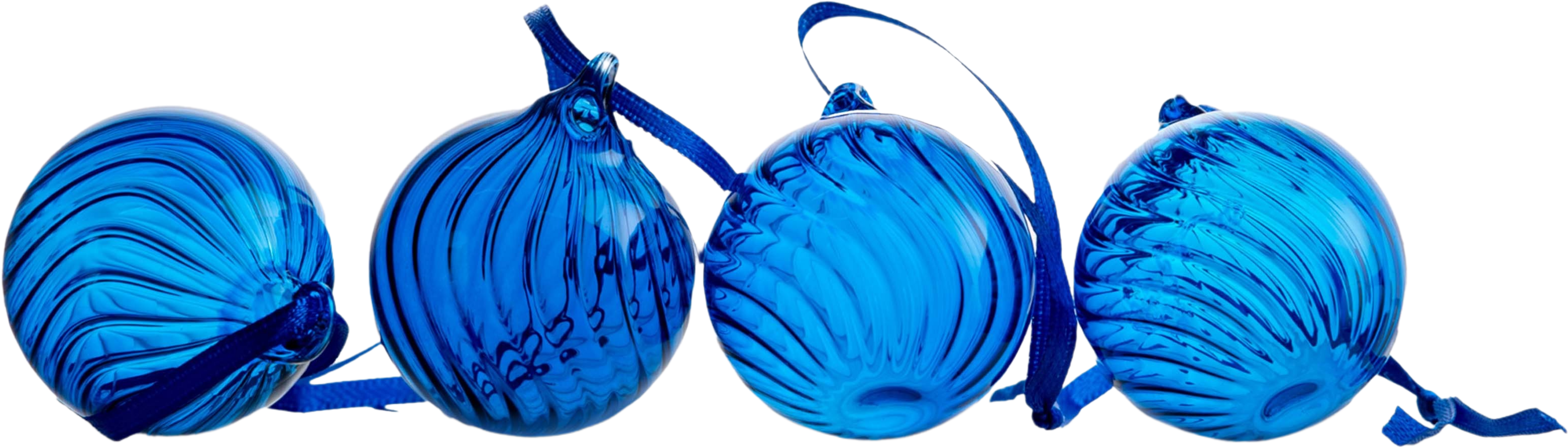 Cada set incluye cuatro bolas artesanales, con cintas de raso a juego, listas para añadir luz y sofisticación a tus decoraciones navideñas.
