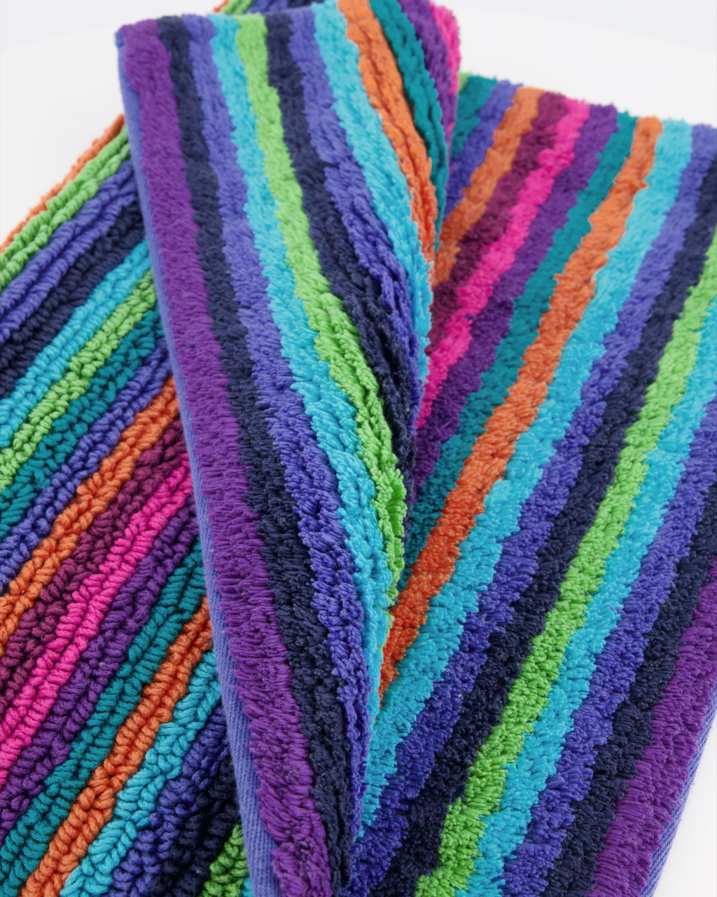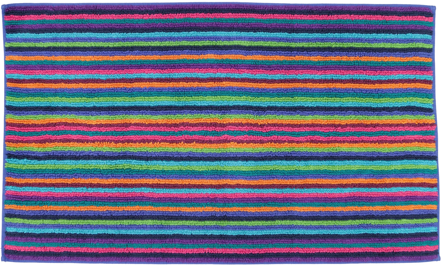¡Añade un toque de alegría a tu cuarto de baño con esta colorida alfombra de baño de Cawö! Su moderno diseño a rayas en una armoniosa paleta de colores la convierte en un elemento destacado que te pondrá de buen humor al instante.