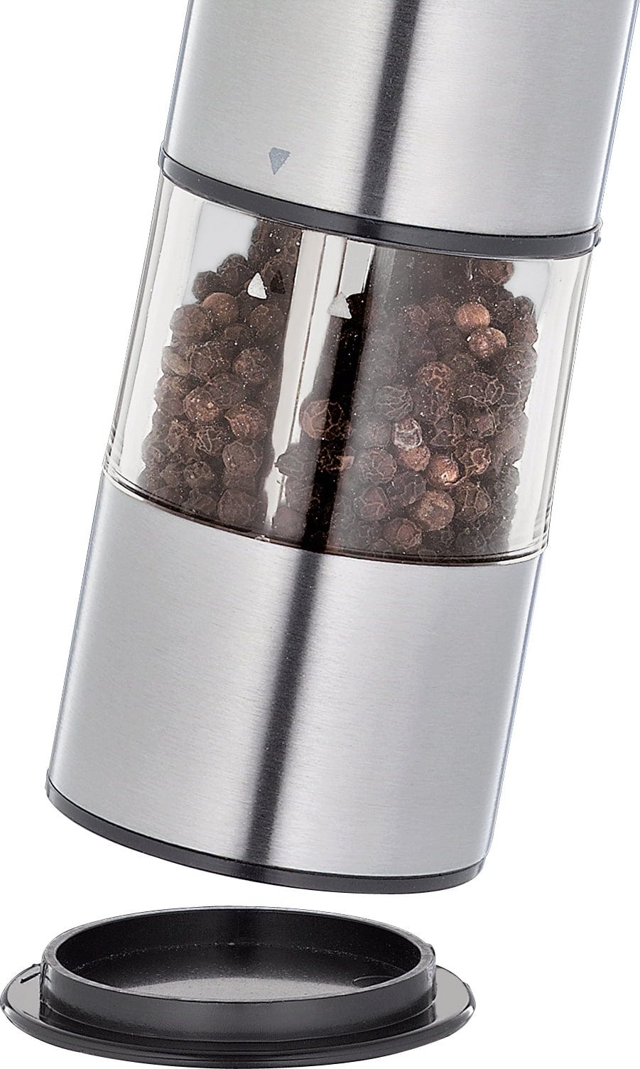Tanto en la cocina como en la mesa, con el set de molinillos BERGAMO puedes sazonar tus platos con precisión. El cuerpo de acero inoxidable satinado de alta calidad no solo es elegante, sino también fácil de limpiar y cómodo de manejar. La ventana transparente te permite controlar en todo momento el nivel de especias, para que sepas inmediatamente cuándo es el momento de rellenarlos.