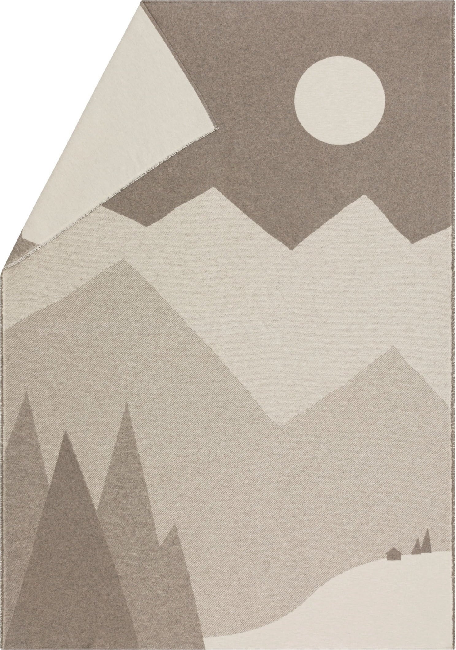 El motivo de una montaña estilizada a la luz de la luna hace que esta ligera manta de franela cree al instante un ambiente acogedor. Ya sea en el salón o como fuente adicional de calor en la cama, siempre llama la atención.
