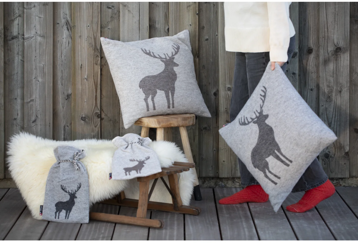 David Fussenegger SILVRETTA - Funda de cojín "Ciervos", Fieltro