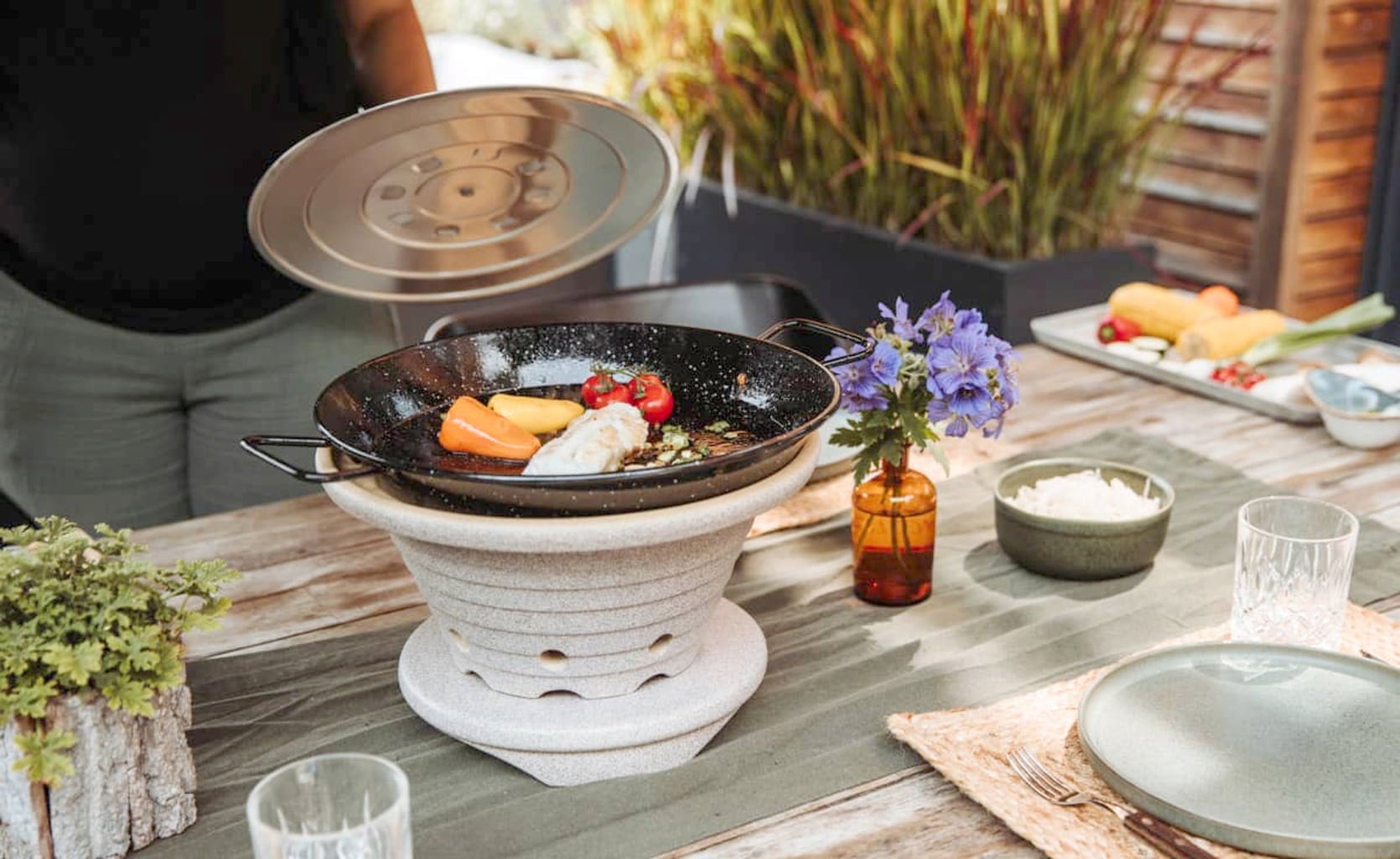Ambiente de barbacoa en cualquier estación. Con la práctica barbacoa de mesa de Denk Keramik esto no es ningún problema. Perfecta para agradables veladas en el balcón, la terraza o el jardín. Especialmente acogedora: puede asar directamente en la mesa.