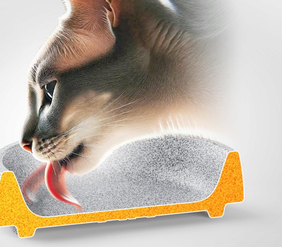 - La superficie de cerámica rugosa permite al gato limpiarse la lengua.