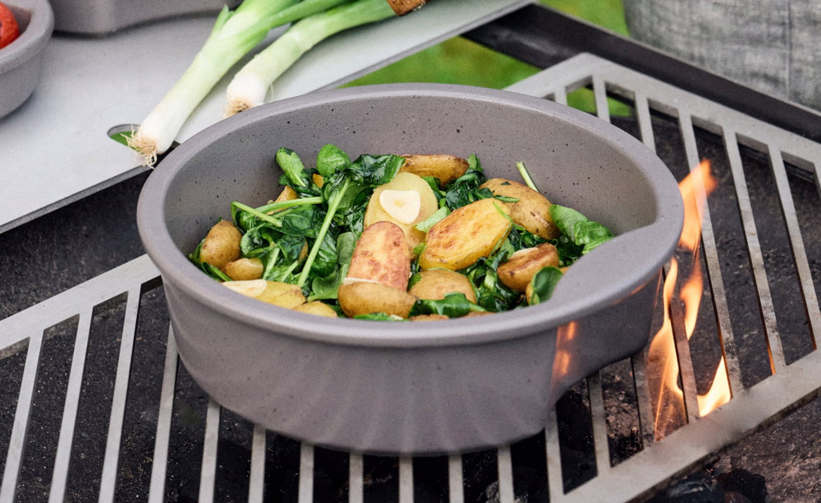 - También es perfecto para cocinar y asar sobre un fuego abierto (brasero).
