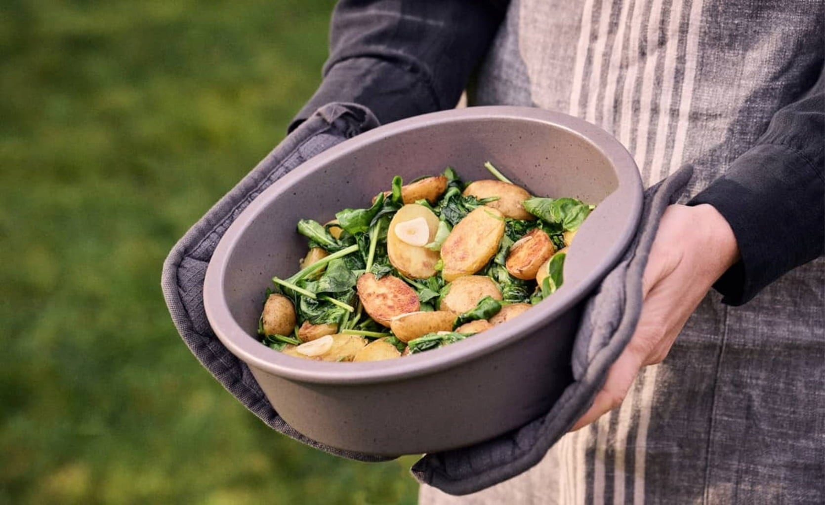 El innovador recipiente de cocción ignífugo, ideal para barbacoas y hornos, también destaca como elegante fuente para servir. El Keltentopf puede colocarse directamente sobre la llama sin inmersión previa. La cerámica alcanza la temperatura en pocos minutos. Gracias al esmalte especial, puede cocinar y asar sin añadir grasa, para una cocina sana con aromas intensos.