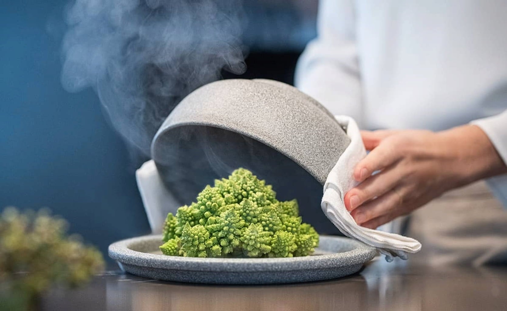 Una característica especialmente práctica: tras un breve tiempo de cocción, las verduras pueden seguir cociéndose bajo la tapa cerrada sin aporte adicional de energía. Por ejemplo, el brócoli o la coliflor sólo requieren 5 minutos de cocción con calor, seguidos de otros 5 minutos con la tapa cerrada.