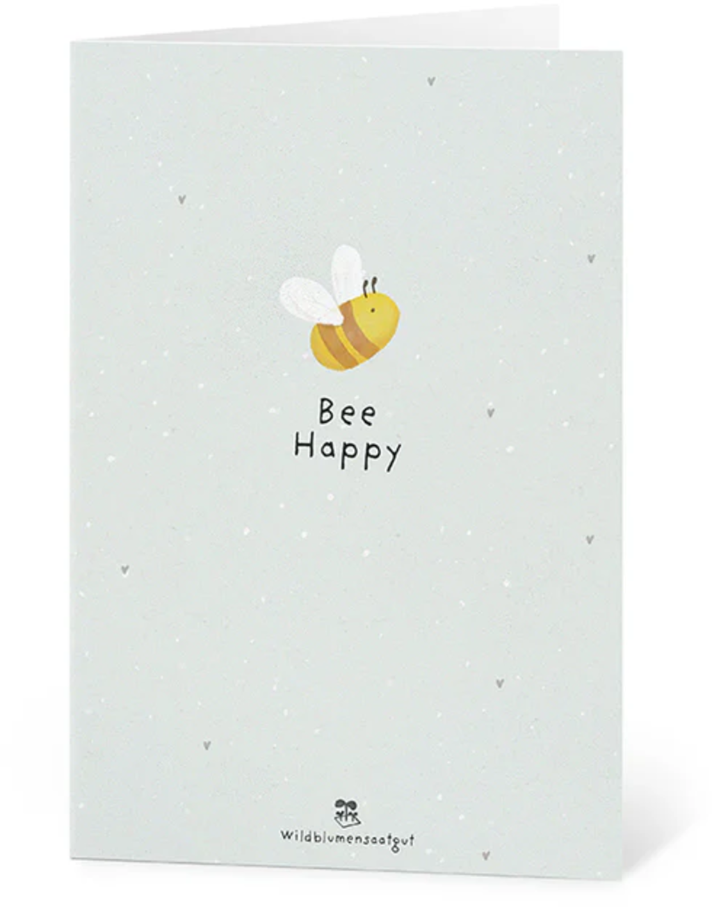 Bee happy: la vida puede ser ligera. Esta tarjeta de papel sembrable es un cariñoso deseo que invita a celebrar las pequeñas cosas, a disfrutar del momento y a no tomarse todo demasiado en serio. Perfecta para regalar una sonrisa a un ser querido o simplemente para decir: don't worry, be(e) happy.
