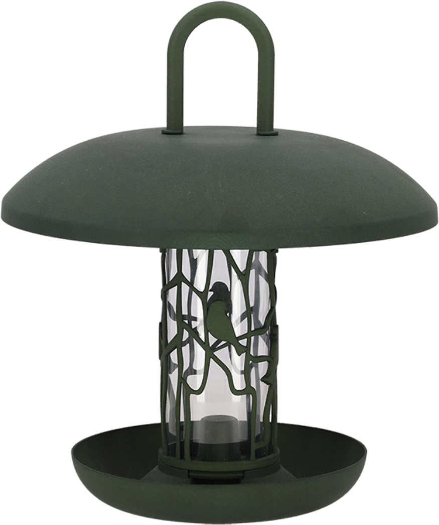 Este comedero de pienso con plato garantiza una alimentación limpia y cómoda para los pájaros del jardín. Fabricado en plástico reciclado, es robusto y duradero, ideal para una alimentación sostenible de las aves.
