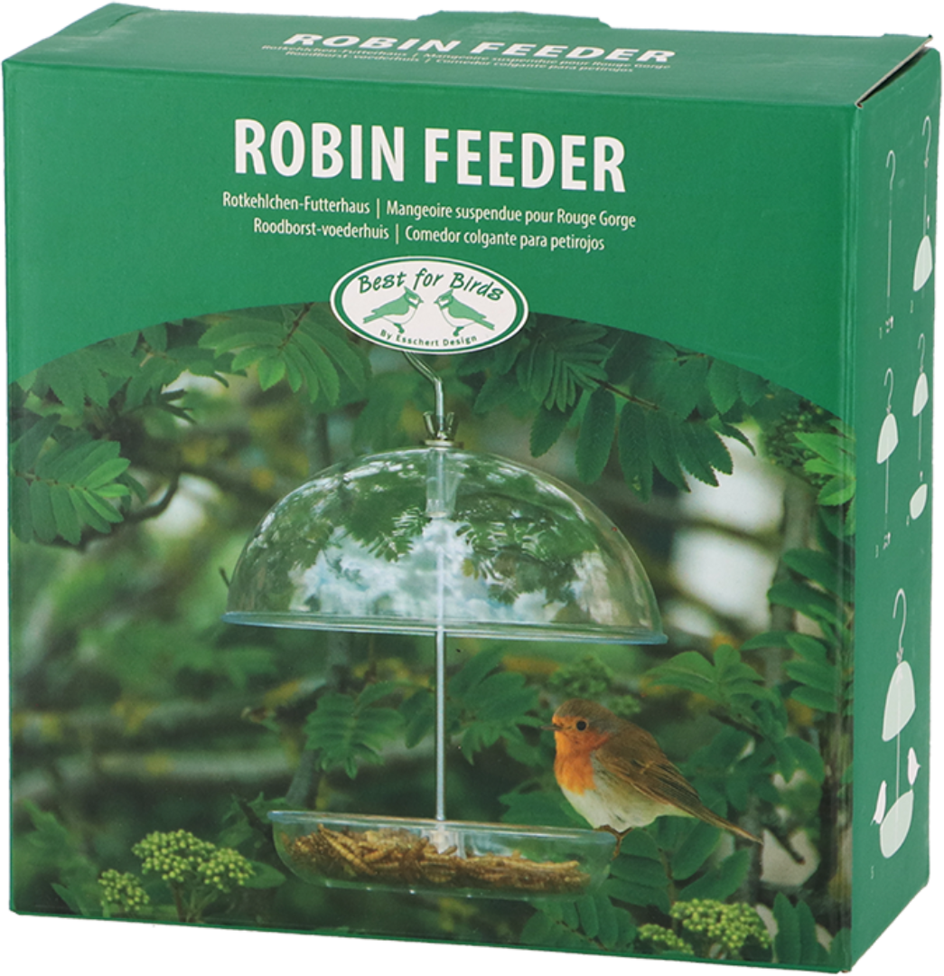 Este práctico comedero protege de forma fiable la comida de la lluvia gracias a su techo abovedado. El material transparente permite observar fácilmente a los pájaros mientras se alimentan. Con gancho integrado para una colocación versátil en el jardín o en el balcón.