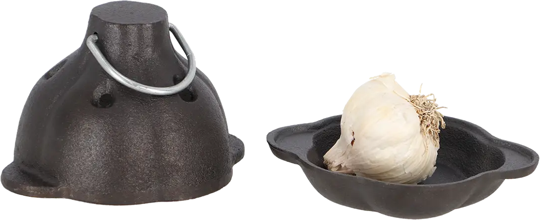 - Cocedor de ajo de hierro fundido para una cabeza de ajo entera