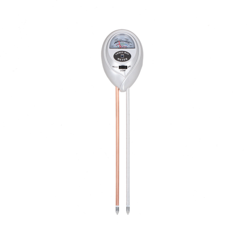 Este medidor compacto 3 en 1 te ayuda a cuidar tus plantas de forma óptima. Mide de forma fiable el pH, la humedad del suelo y los niveles de luz, para que sepas exactamente cuándo regar, fertilizar o corregir el suelo. Para plantas sanas y rendimientos máximos.