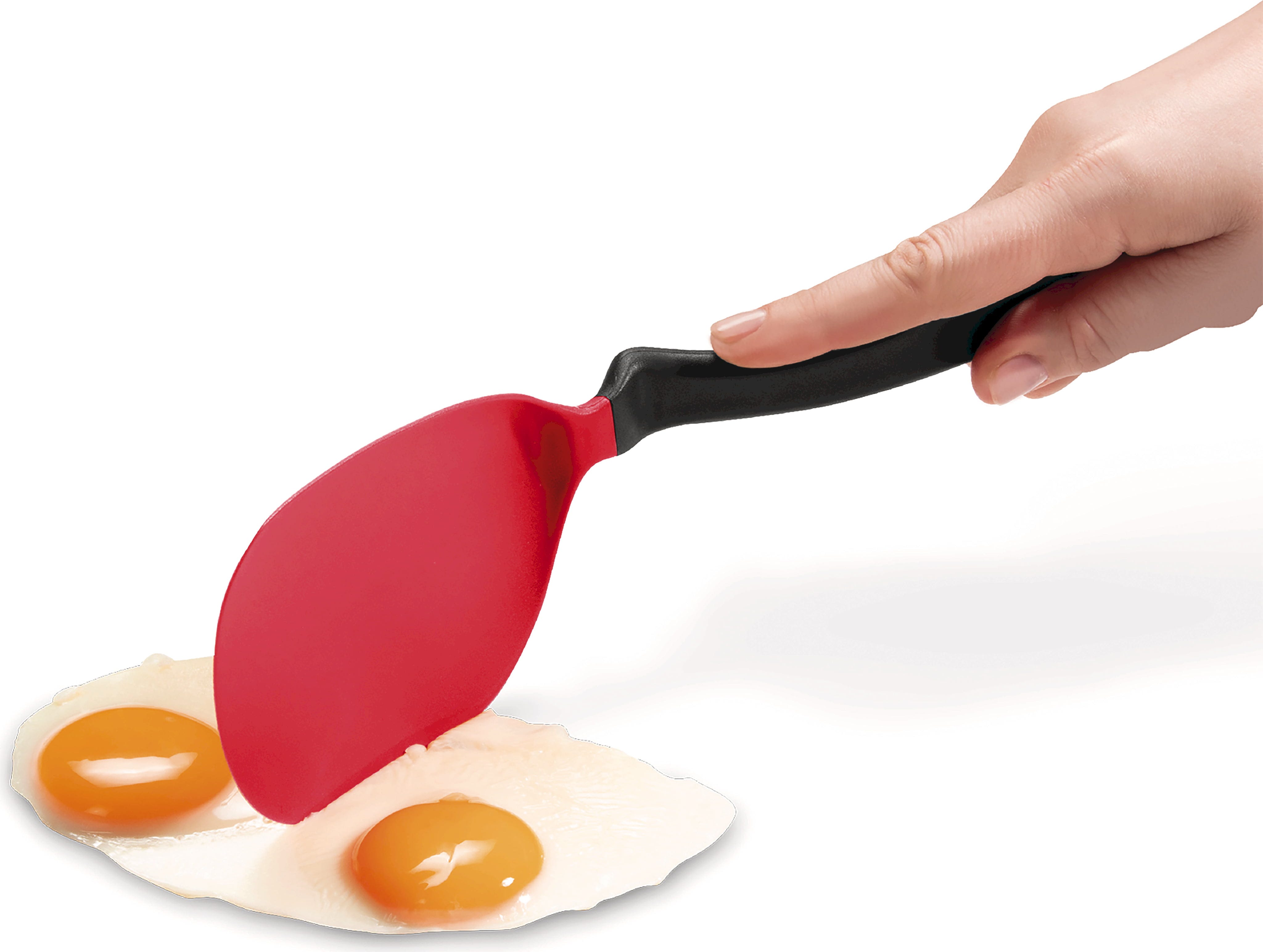 La paleta Chopula de Dreamfarm es un utensilio refinado que, gracias a su cabeza ancha y flexible, se desliza fácilmente bajo cualquier alimento que se esté cocinando. Su diseño único te permite llegar con precisión incluso a las esquinas de las sartenes y los cuencos. Gracias al pliegue especial del mango, el cabezal permanece siempre elevado sobre la superficie de trabajo cuando lo apoyas, lo que garantiza la máxima limpieza en la cocina.