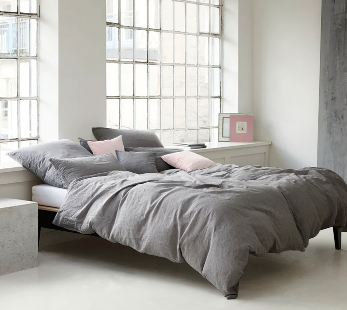 elegante Set Funda Nórdica en Mezcla de Lino Breezee - Gris Oscuro