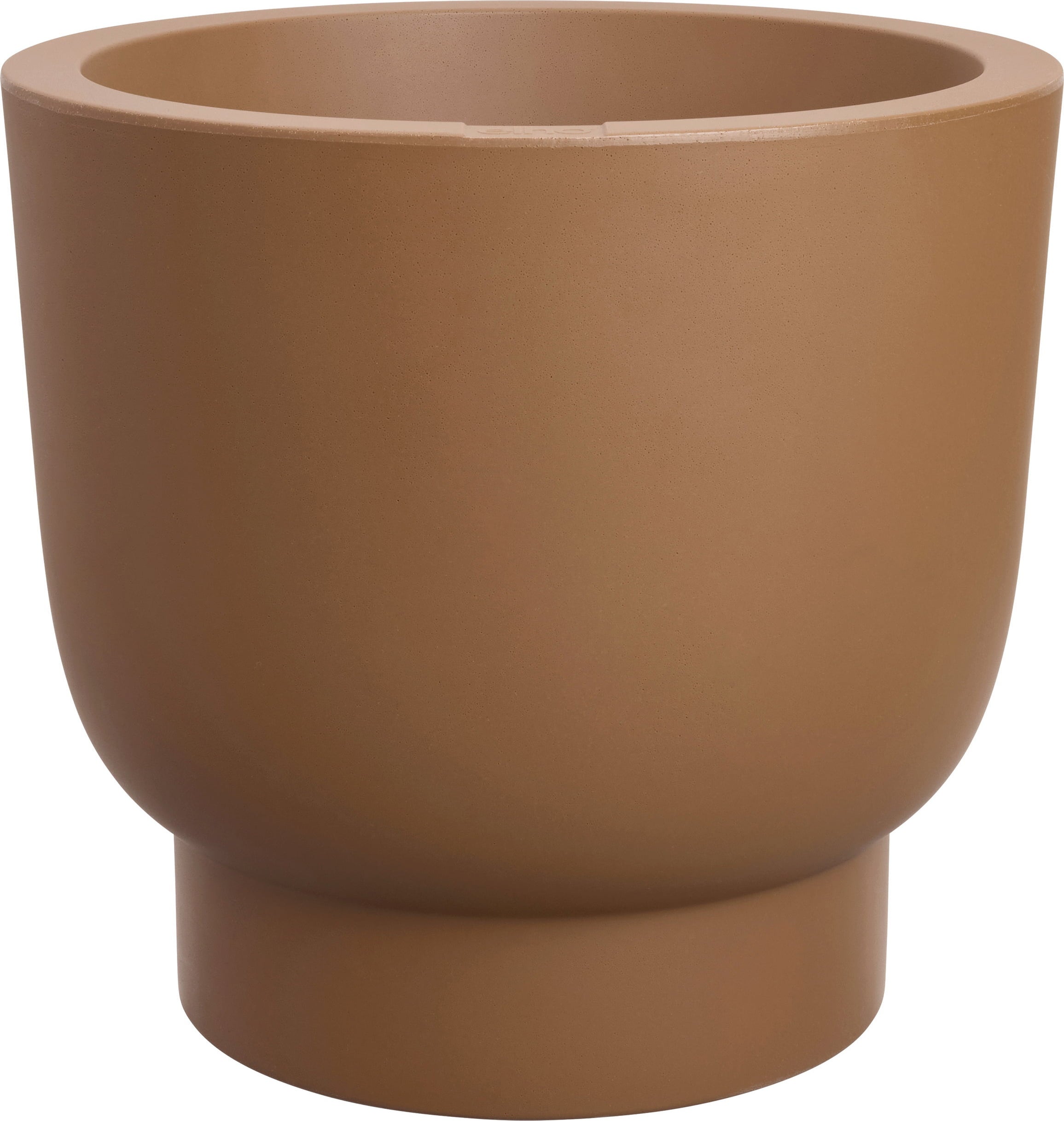 El macetero amber grail de color ámbar de elho está fabricado en plástico de alta calidad y tiene un aspecto especialmente elegante, ya sea en el salón o en la terraza. Al ser resistente a los rayos UV y a las heladas hasta -40°C, se puede dejar al aire libre con seguridad tanto en verano como en invierno.