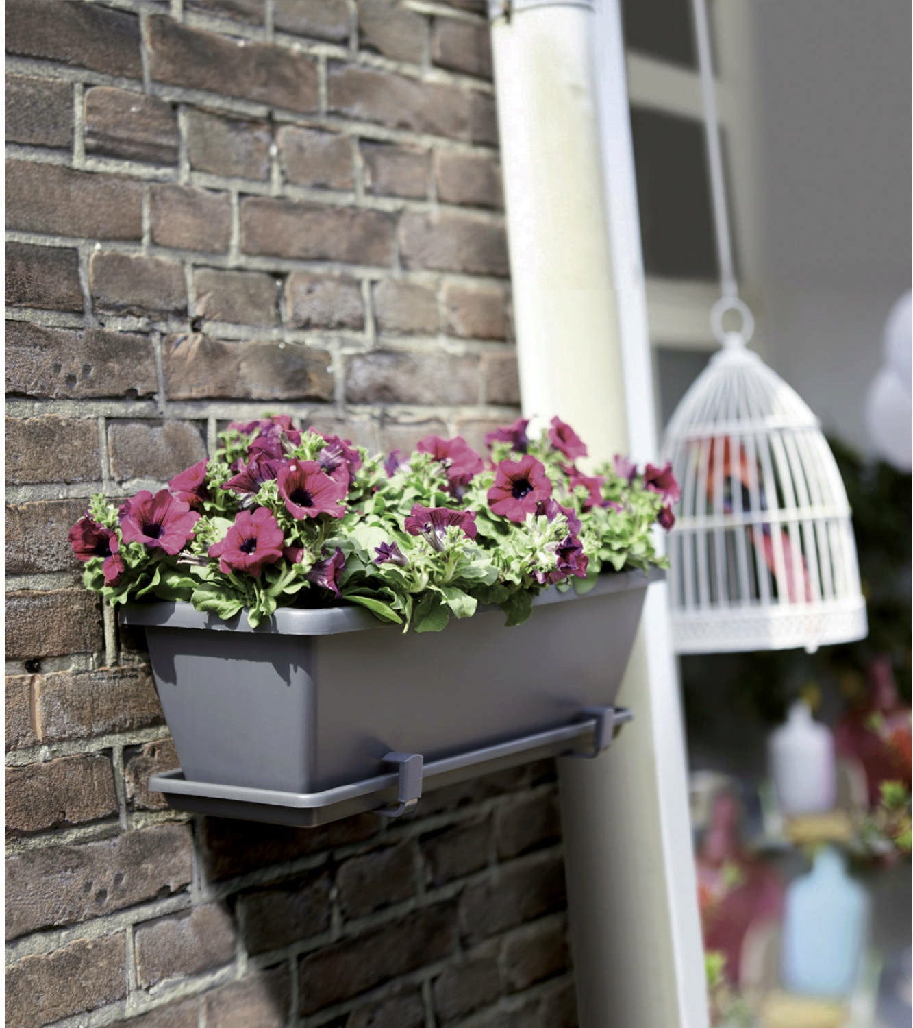La elegancia y la estabilidad se han combinado en esta jardinera para balcón. Con tubos de drenaje integrados en el suelo. Por lo tanto, tus plantas están protegidas contra el anegamiento y el riesgo de pudrición de la raíz.
