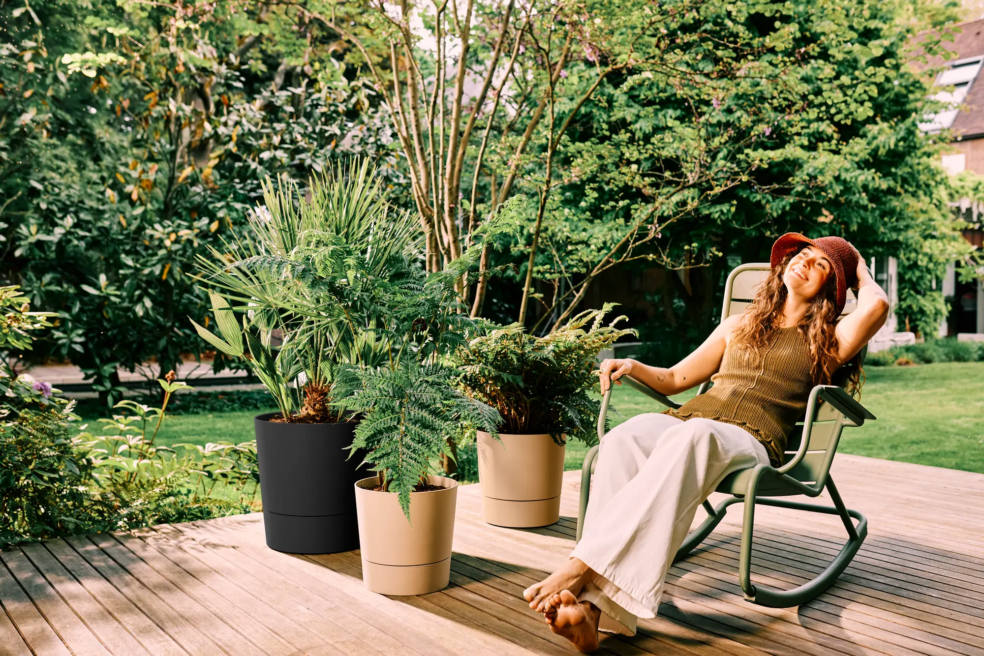 La maceta foss de elho garantiza un cuidado óptimo de las plantas gracias a su práctico sistema de riego automático. El agua se recoge en el depósito de 4,7 litros y se libera cuando es necesario, evitando el estancamiento y el desperdicio. Robusta, resistente a las heladas y fabricada con plástico 100 % reciclado, es ideal tanto para interiores como para exteriores.
