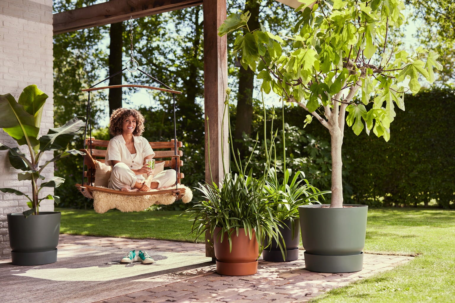 La maceta Greenville convence por su diseño elegante y su inteligente construcción. Gracias al depósito de agua integrado, tus plantas recibirán agua de manera uniforme, lo que favorece de forma óptima su crecimiento vigoroso. Incluso si olvidas regar, tus plantas estarán protegidas para que no se sequen.