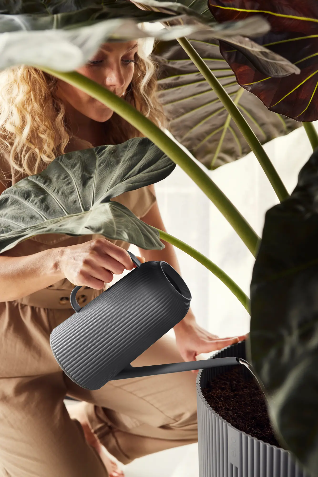 Con la regadera vibes fold de elho puedes regar las plantas de forma precisa y sin desperdiciar agua. La boquilla fina permite dosificar el agua con atención, mientras que su capacidad de 1,7 litros reduce la necesidad de rellenarlo con frecuencia. Además de ser práctico, destaca por su elegante diseño, que lo convierte en un auténtico complemento decorativo.