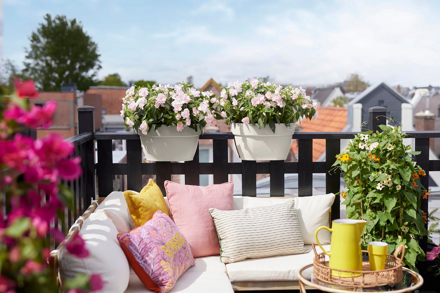 Esta elegante maceta es perfecta para añadir un toque de verde a tu balcón. La suspensión colocada en el centro le permite decorar con plantas tanto el interior como el exterior de la barandilla del balcón. Con sus formas suaves y redondeadas, esta maceta encaja armoniosamente en cualquier entorno exterior.