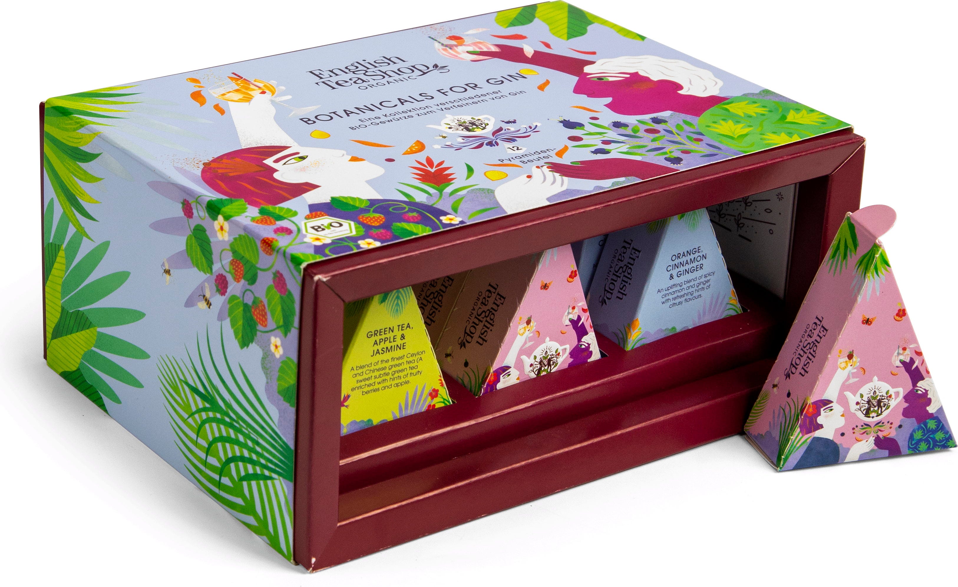 Con el set de regalo Botanicals for Gin, podrás experimentar tres excitantes sabores para llevar su ginebra a un nuevo nivel. Sólo se utilizan especias y frutas recién recolectadas procedentes de cultivos ecológicos sostenibles. Gracias a las bolsitas piramidales predosificadas, la preparación es rápida y sencilla.