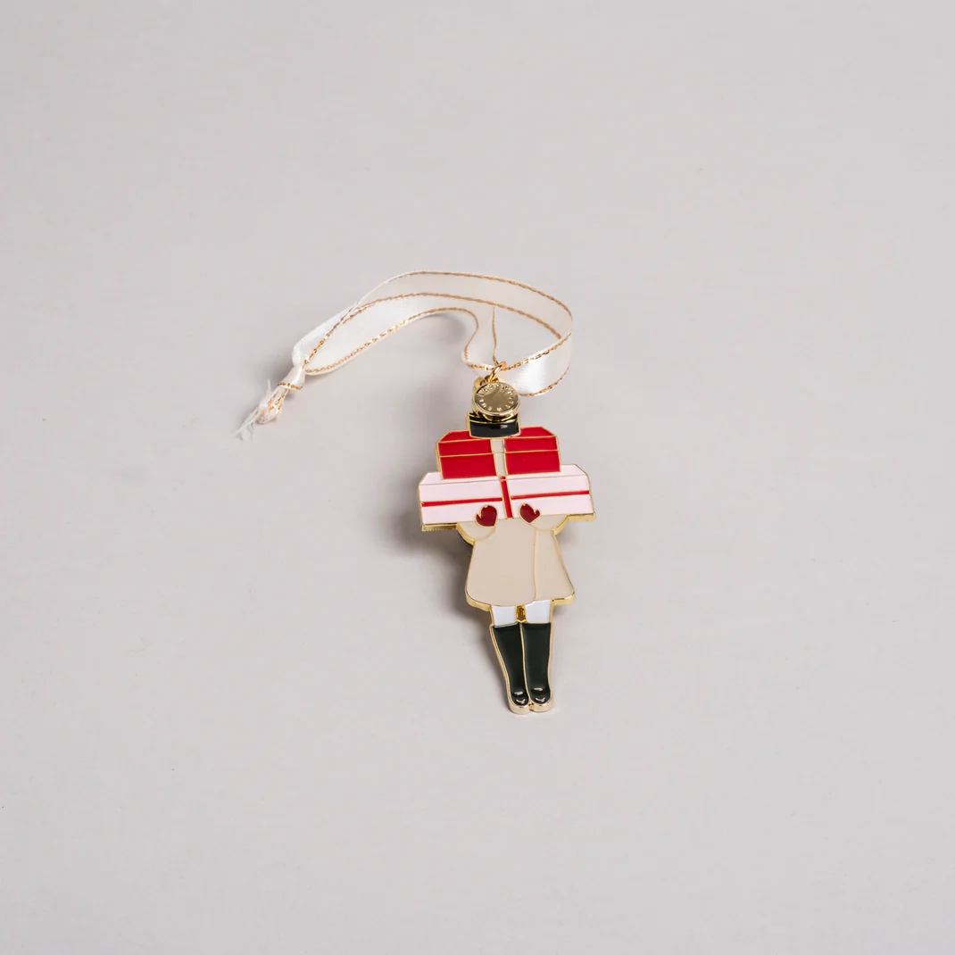Esta decoración aporta alegría festiva y delicados tonos a tu árbol. La figurita, elaborada con esmero y adornada con paquetes de regalo, destaca por su refinada combinación de beige, rojo, rosa y verde, creando un acento elegante. Dulce y encantadora, también es perfecta como detalle en un paquete de regalo. Un pequeño detalle capaz de dar mucha felicidad.